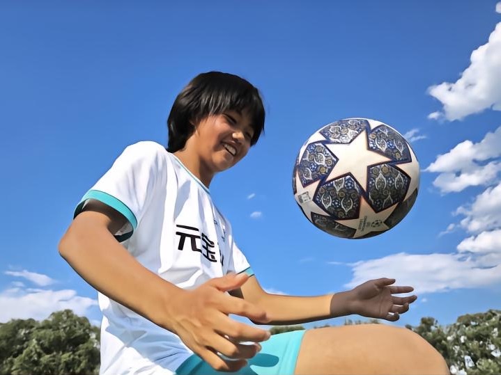 ↑“元宝女足”队员在练习颠球。(受访者供图)