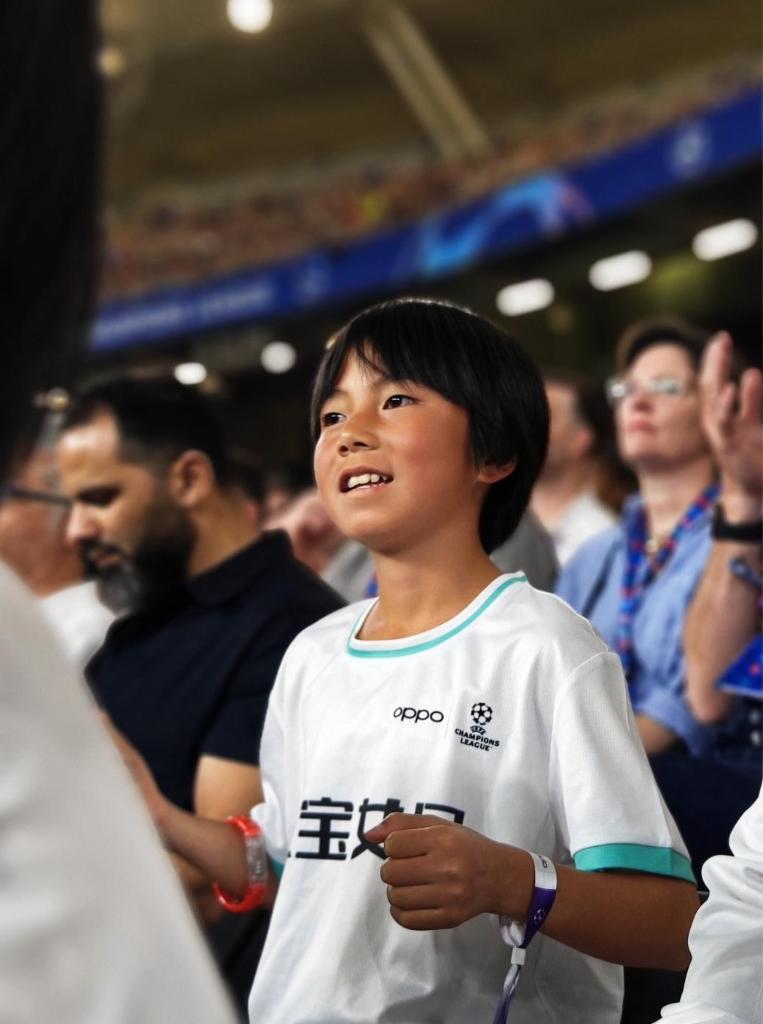 ↑“元宝女足”小球员在欧冠决赛现场观赛。(受访者供图)
