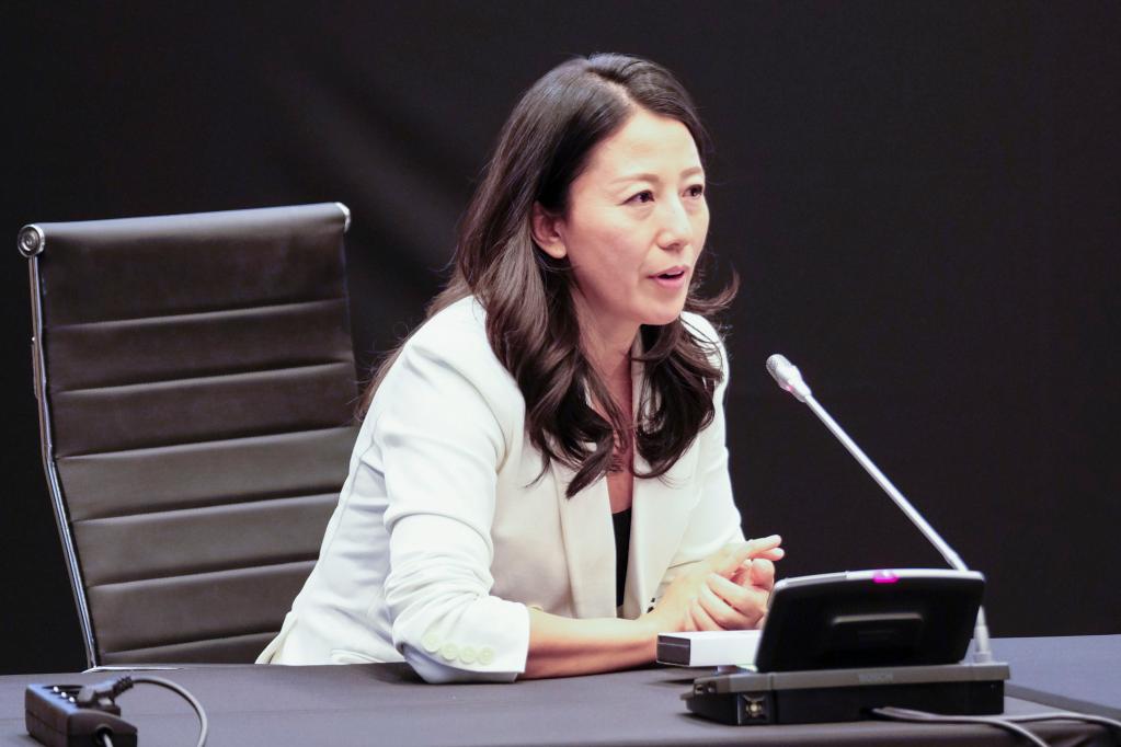 2019年11月7日,杨扬在当选世界反兴奋剂机构副主席后发表讲话。新华社记者周楠摄