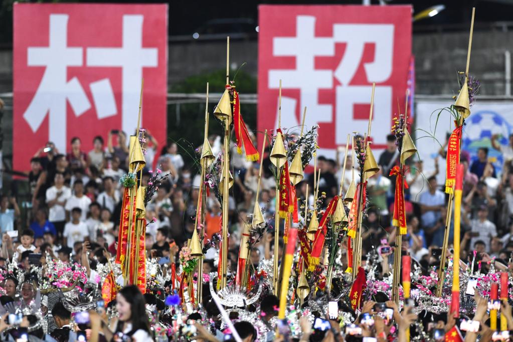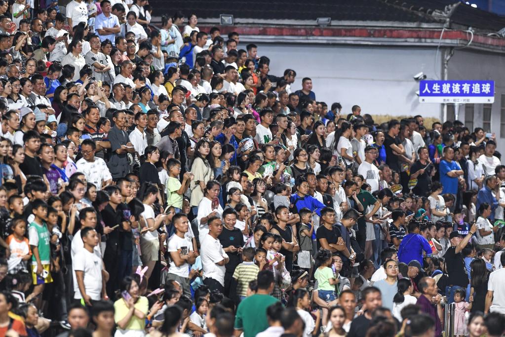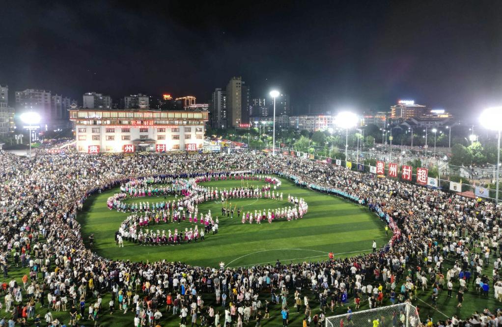 6月17日,人们在贵州“村超”足球赛中场休息时间观看表演。新华社记者杨文斌摄