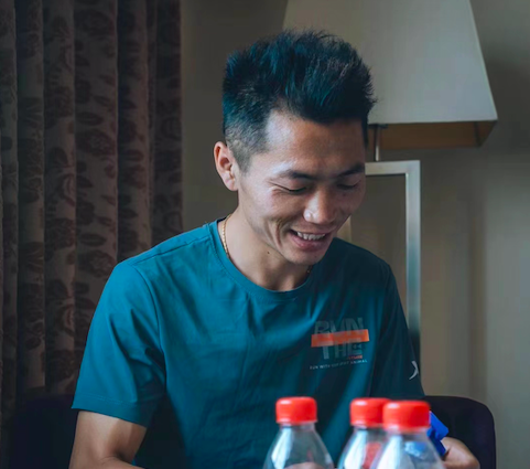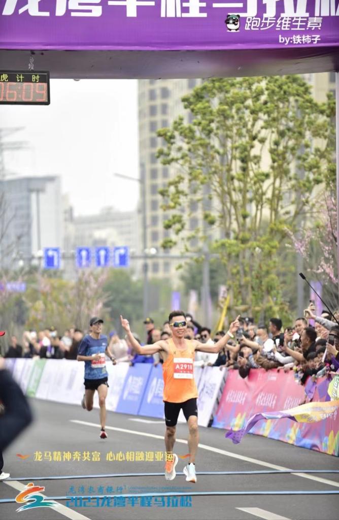 3月12日,岑万江在2023龙湾半程马拉松赛中。(受访者供图)