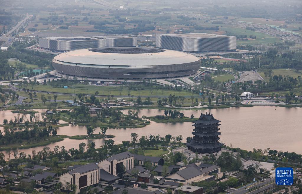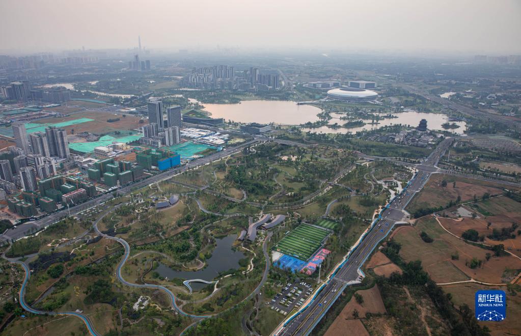 这是东安湖体育公园及通往成都市中心的蜀都大道东一段(6月27日摄)。新华社记者 江宏景 摄