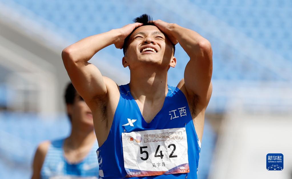 6月28日,江西队选手吴宇昂在男子400米决赛后庆祝。最终,他以46秒27的成绩夺冠。新华社记者 王丽莉 摄