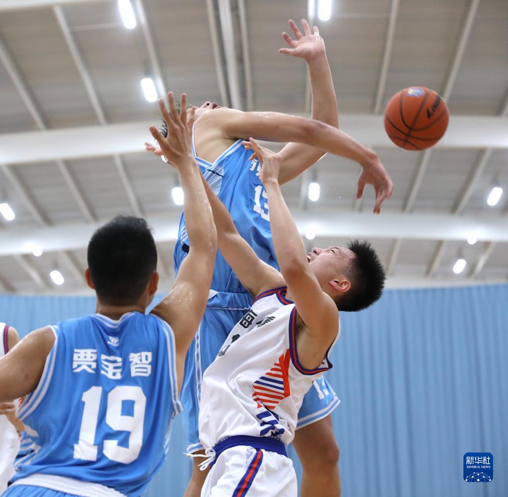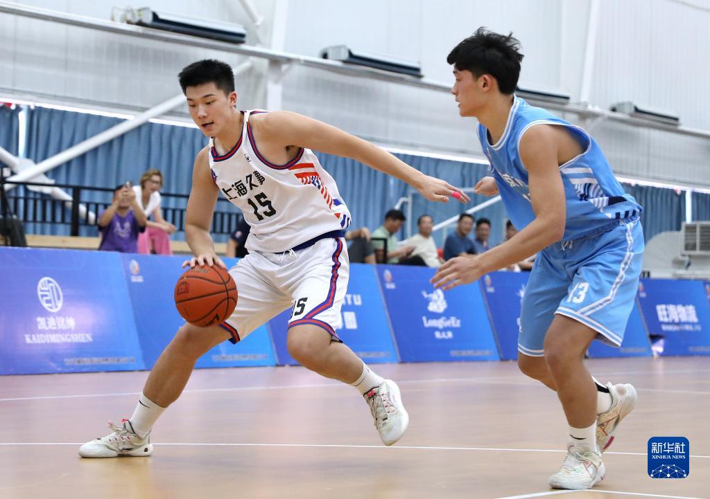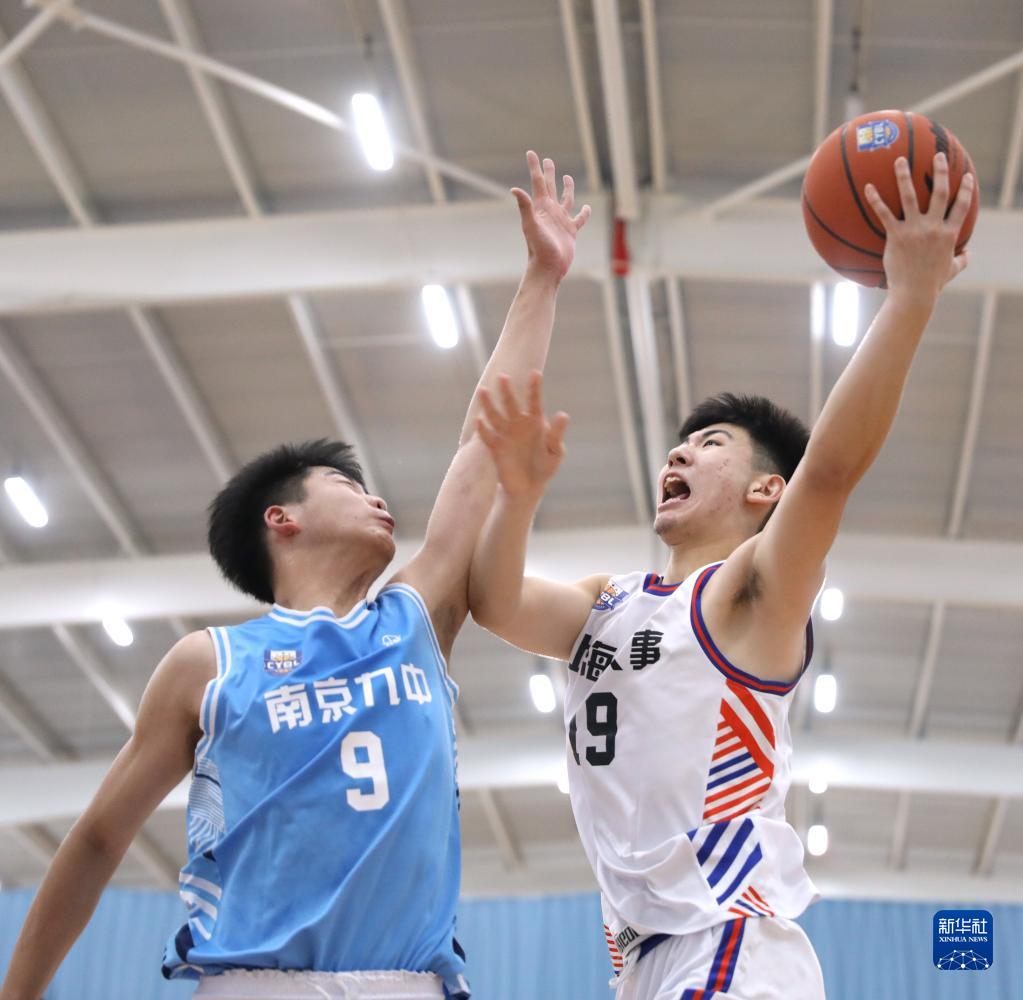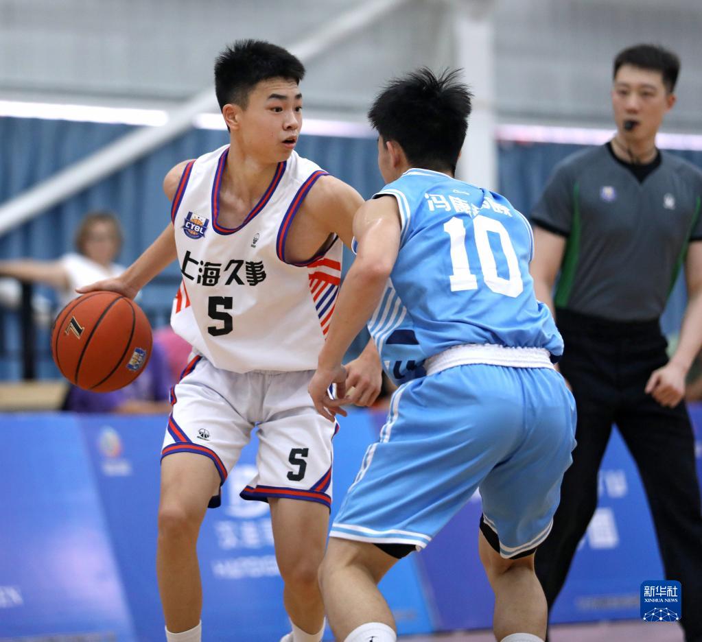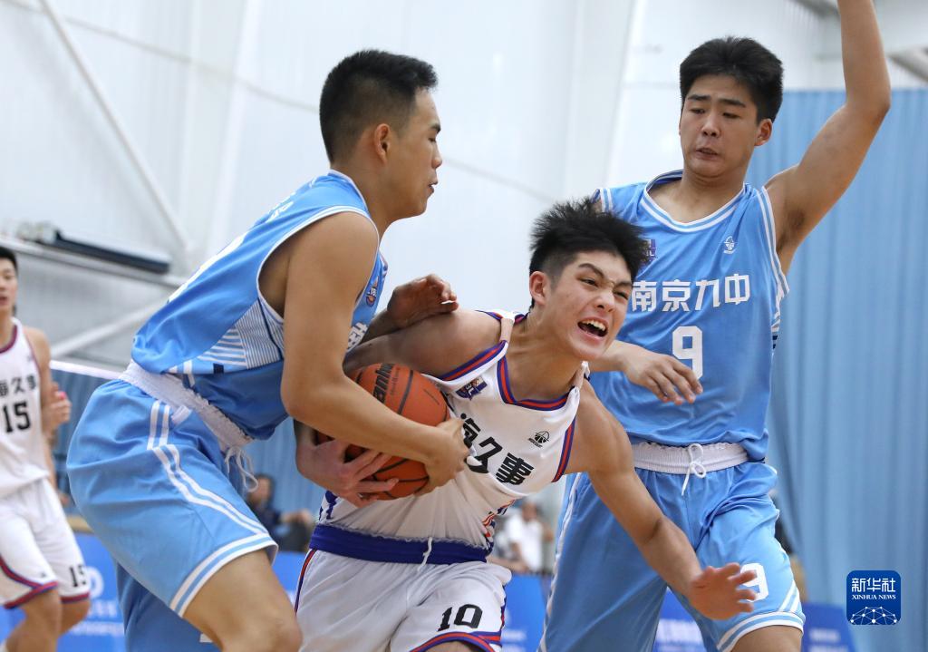 6月28日,南京第九中学队球员王家铭(右)在比赛中进攻。新华社记者姚剑锋摄