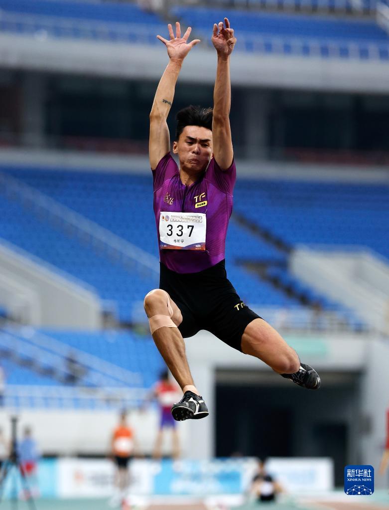 6月28日,河北队选手韦昕宇在男子跳远决赛中。最终,他以8米00的成绩获得季军。新华社记者 王丽莉 摄