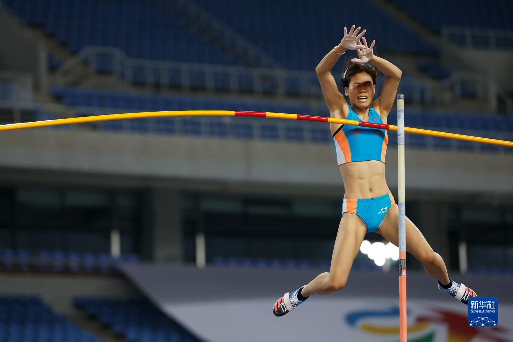 6月29日,浙江队选手李玲在女子撑杆跳高决赛中。最终,她以4米51的成绩获得亚军。新华社记者 王丽莉 摄