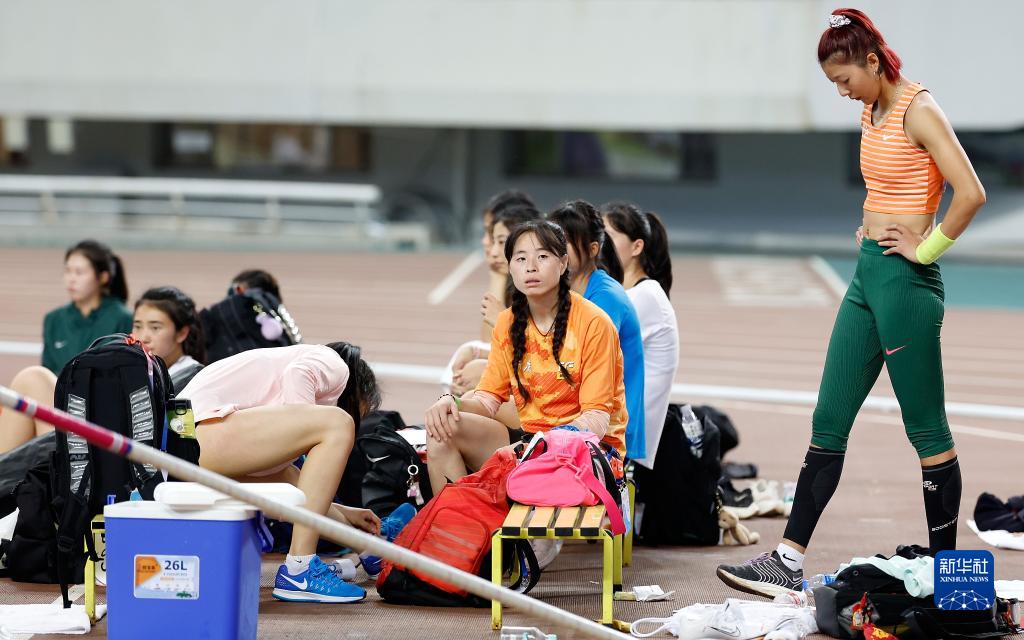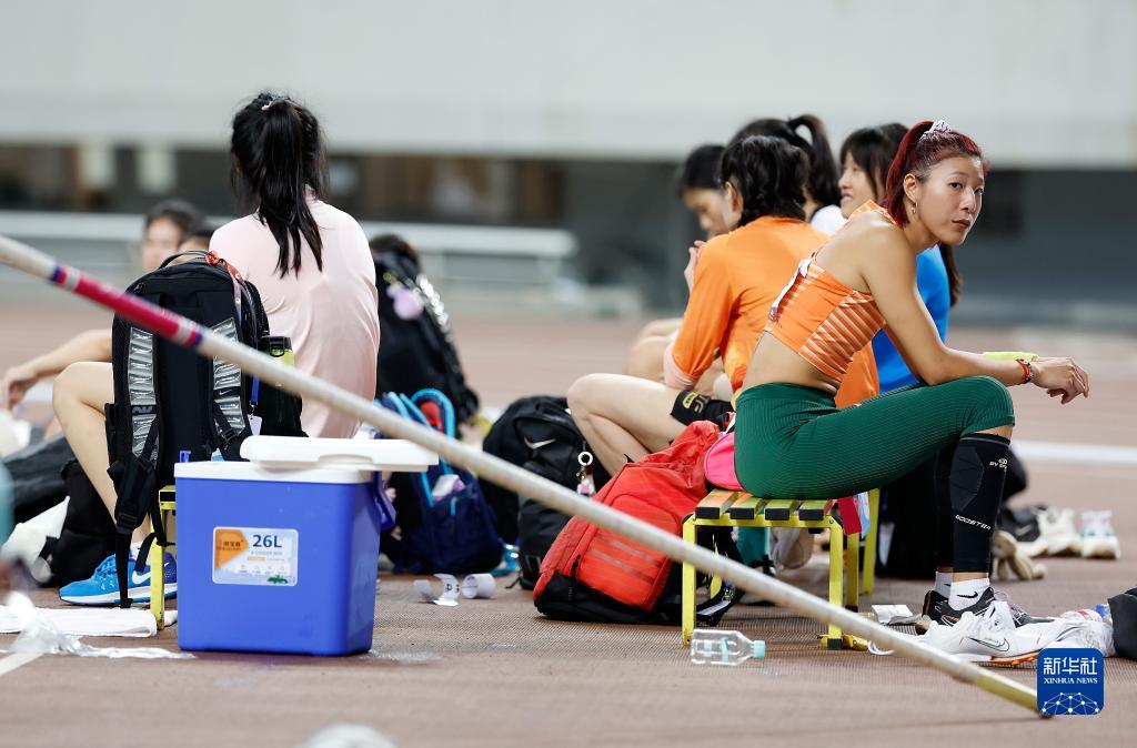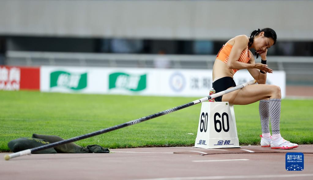 6月29日,浙江队选手徐惠琴在女子撑杆跳高决赛间隙。她三次未能越过她第一个高度4米41,最终没有成绩。新华社记者 王丽莉 摄