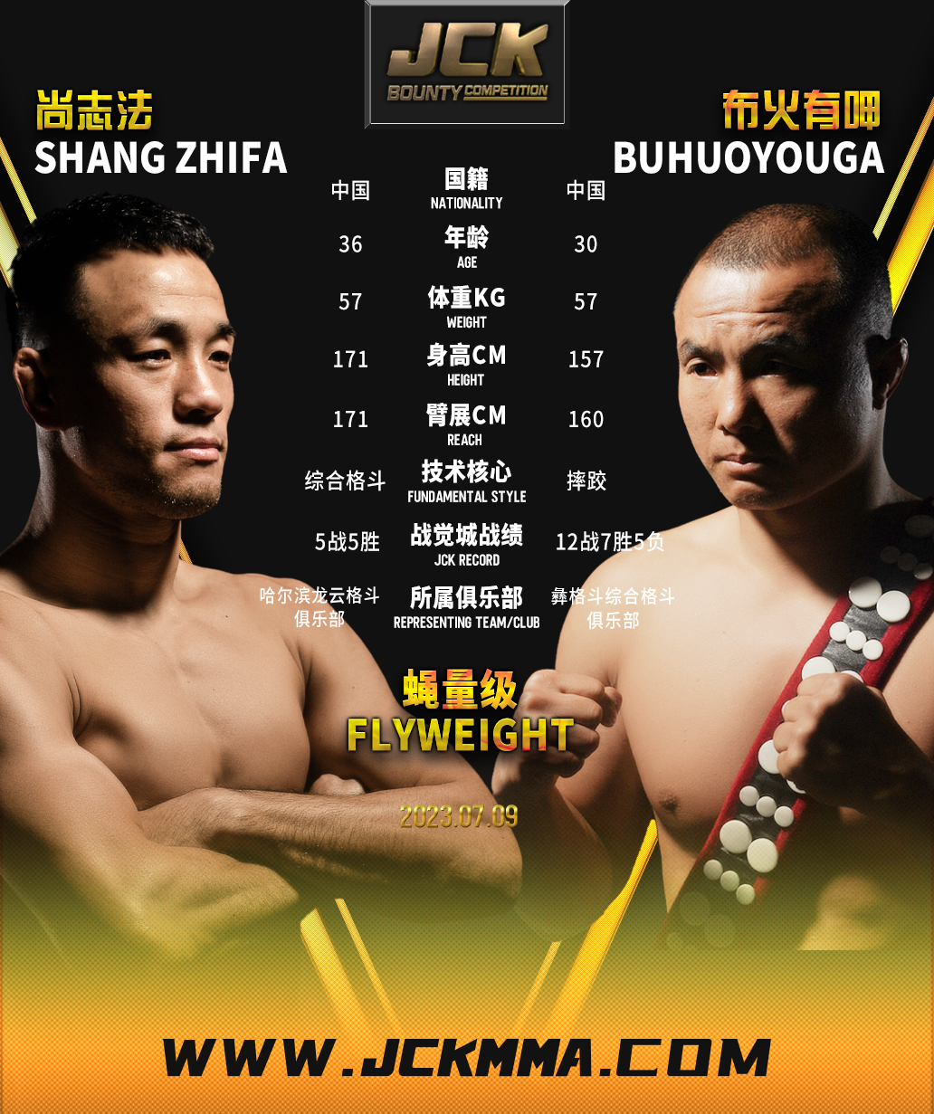 2023年7月9日,JCK战觉城2022-2023赛季第29战“觉城之巅”即JCK战觉城笼斗赏金挑战赛决赛来袭,头条主赛尚志法与布火有呷两强相争,联合主赛王绍祥与都力勒、王纪征与胡布兰·吐尔逊别克争夺百万;王奇与丁猛、艾力·木拉特别克与来自塔吉克斯坦的阿吉两组赏金赛半决赛也将在本场决出胜负。