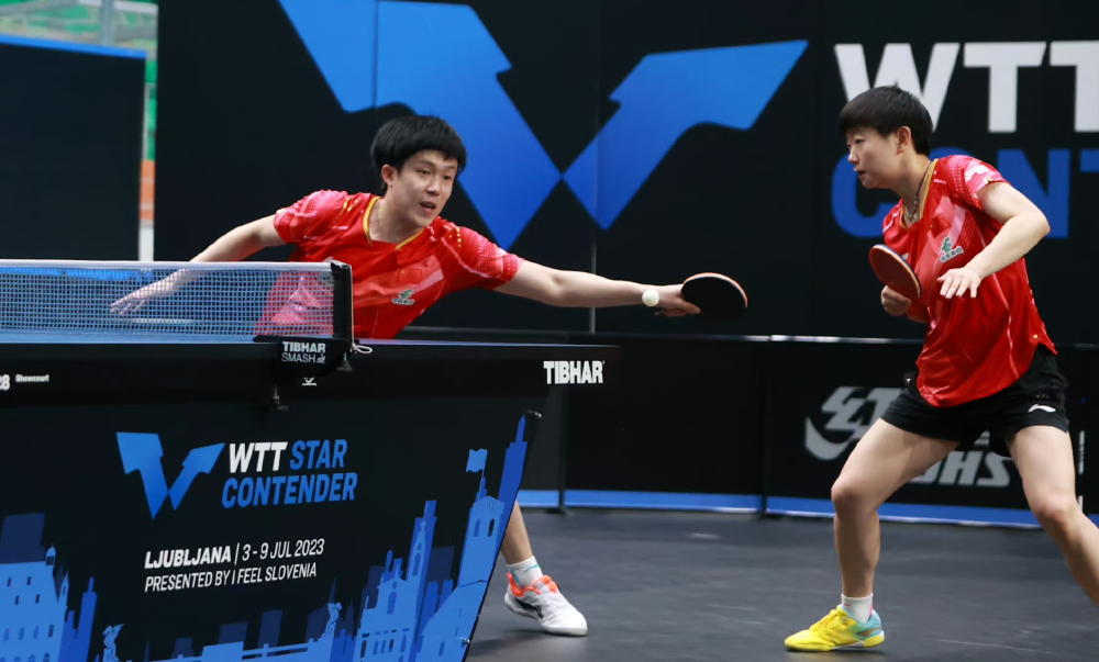 7月7日,王楚钦/孙颖莎在比赛中。图片来自WTT世界乒联官方社交媒体账号