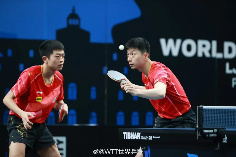 男双半决赛中,马龙/袁励岑3:0横扫法国勒布伦兄弟组合,决赛对手是向鹏/林诗栋,后者在另外一场半决赛中3:0轻取韩国组合安宰贤/林钟勋。