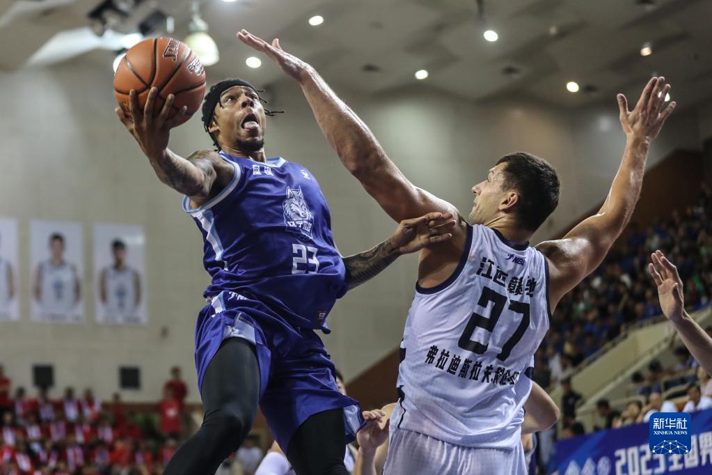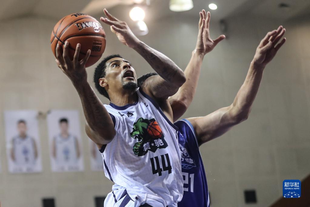 7月9日,江西赣驰队球员加里纳特(左)在比赛中上篮。新华社记者 潘昱龙 摄