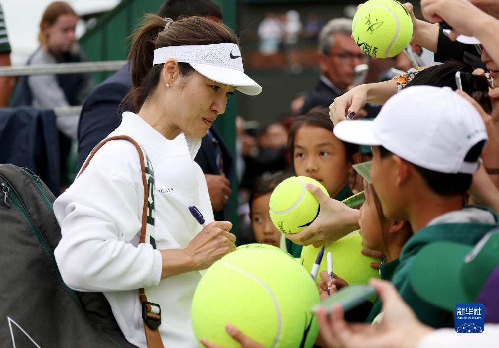 7月11日,李娜在比赛后为球迷签名。新华社记者李颖摄