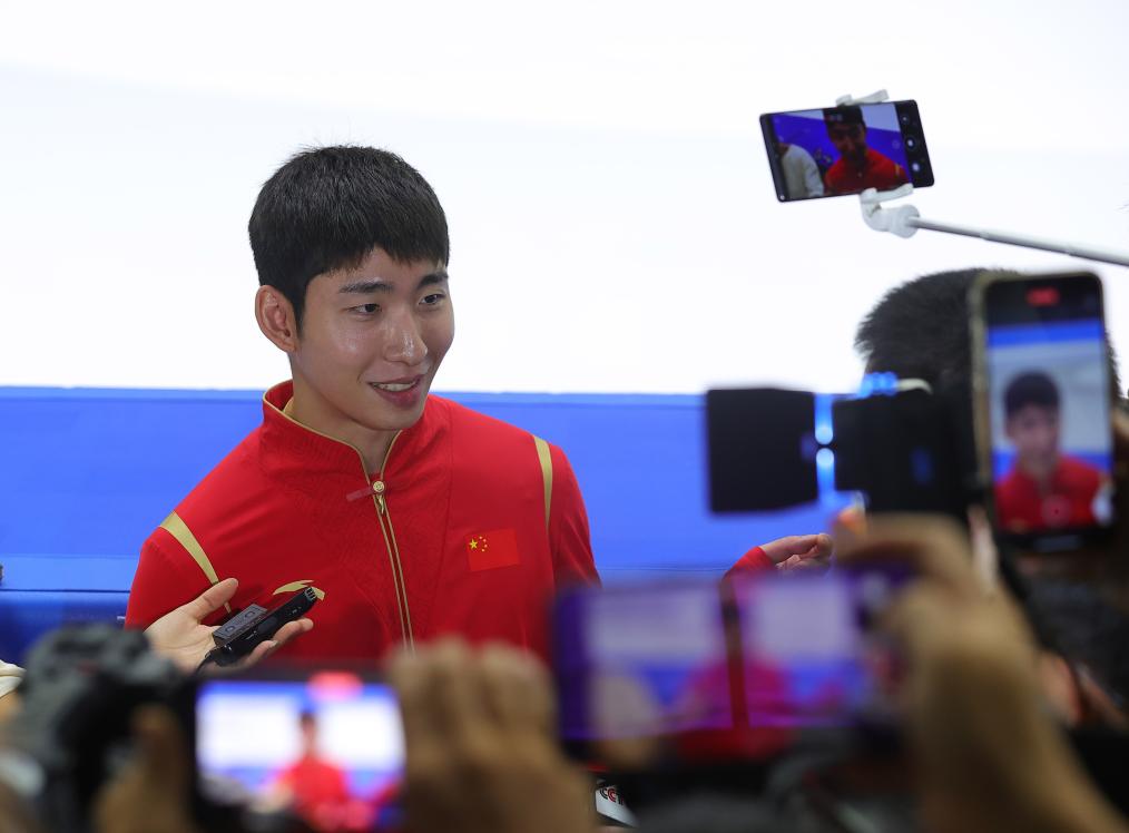 7月11日,训练营运动员林孝埈接受采访。新华社记者 丁旭 摄