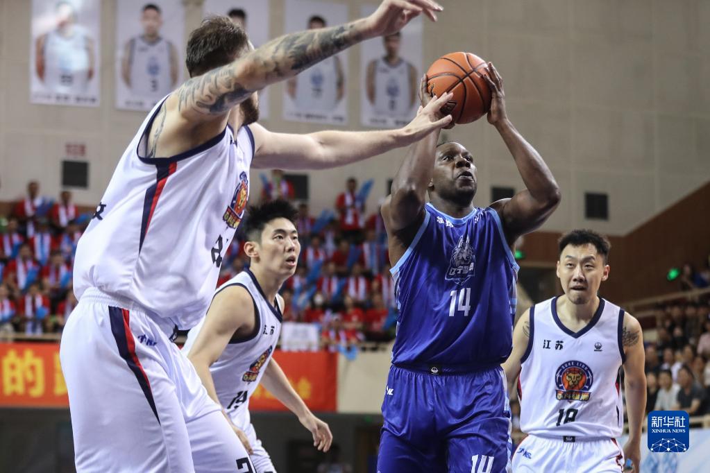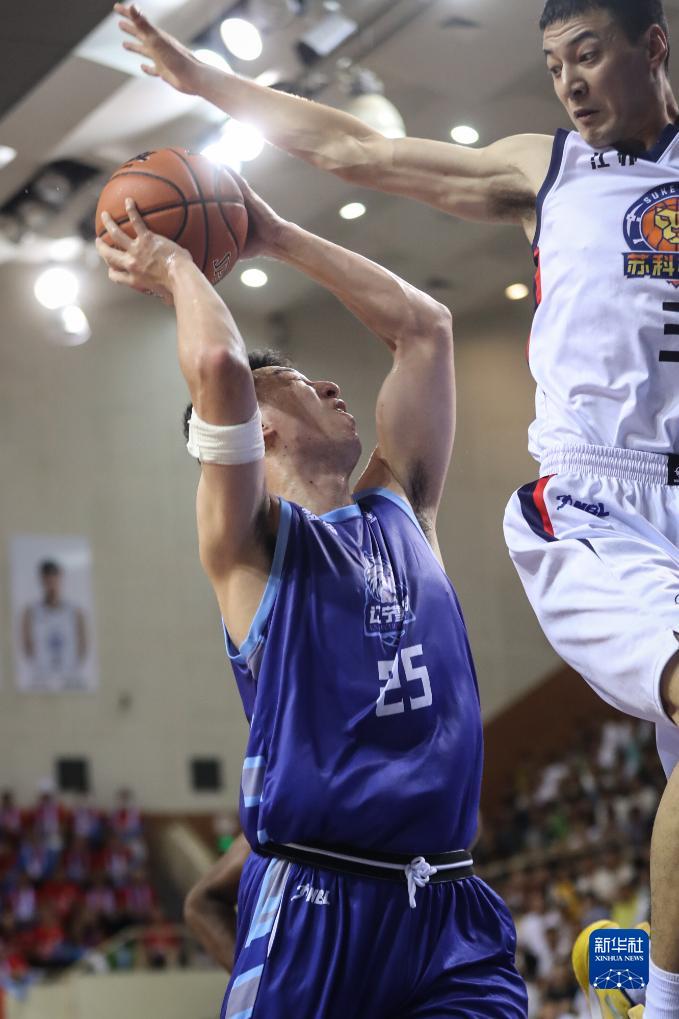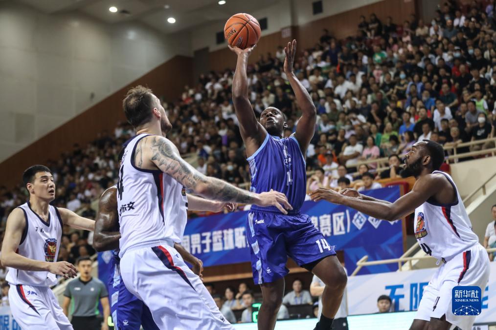 7月16日,江苏盐南苏科队球员库芒古(中)在比赛中传球。新华社记者 潘昱龙 摄