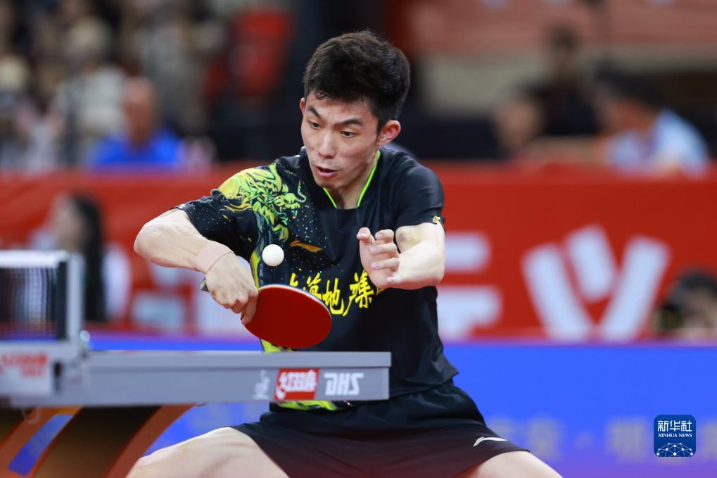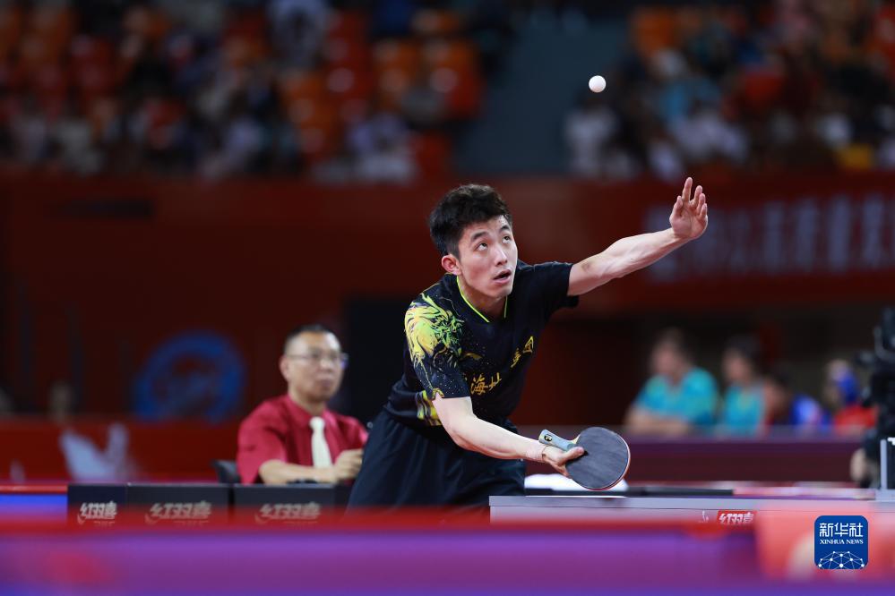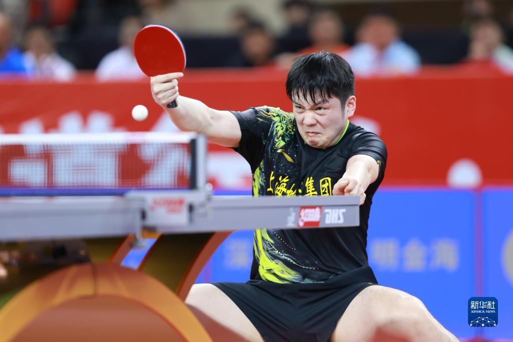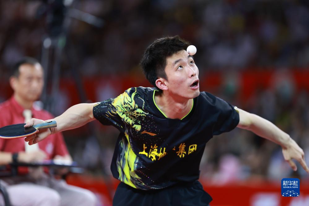 7月19日,上海地产集团队选手樊振东在比赛中,他以3比0战胜汕头明润队选手徐海东。最终上海地产集团队以3比0战胜汕头明润队。新华社记者 刘续 摄