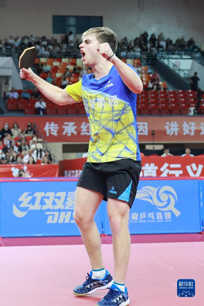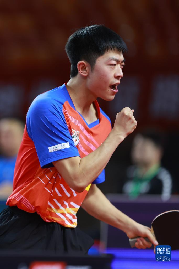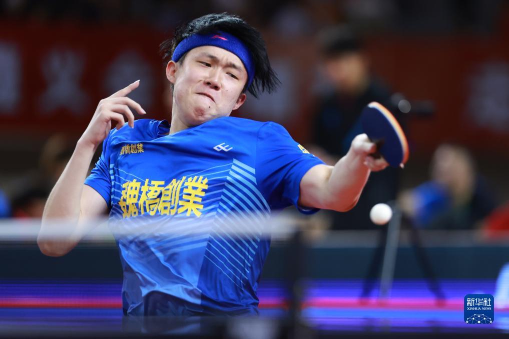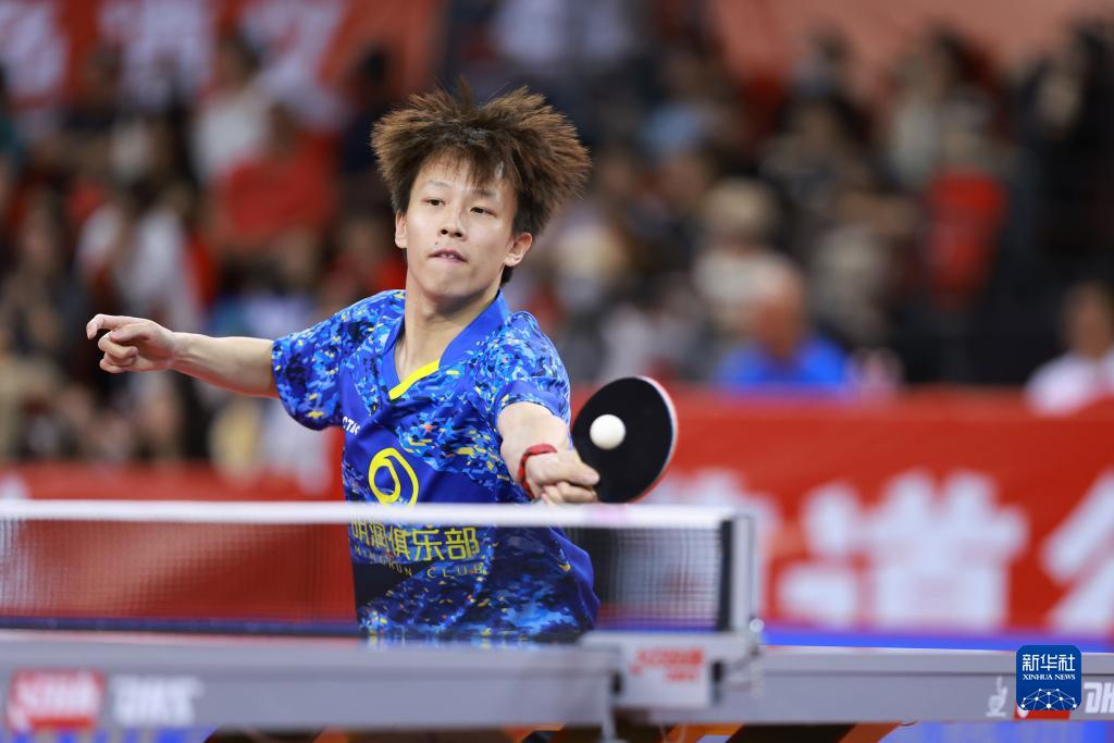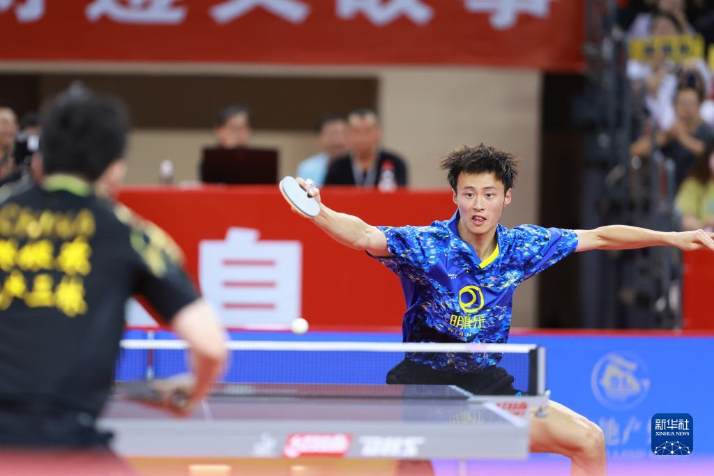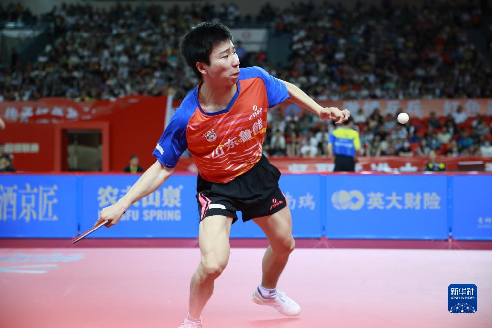 7月19日,山东魏桥队选手王楚钦在比赛中,他以3比1战胜山东鲁能队选手袁励岑。最终山东魏桥队以3比2战胜山东鲁能队。新华社记者 刘续 摄