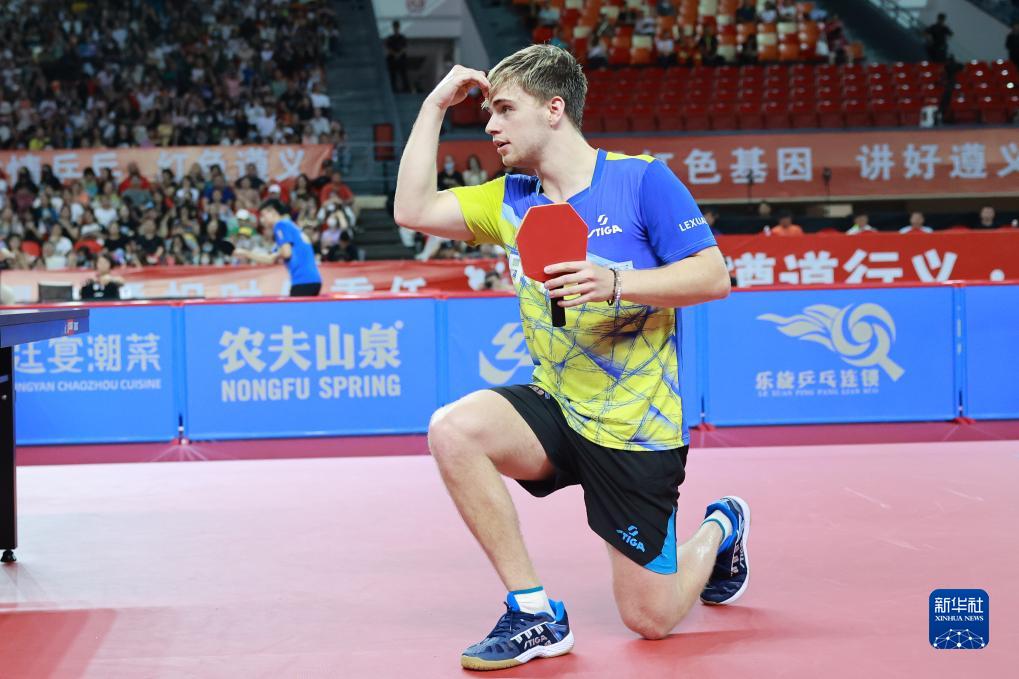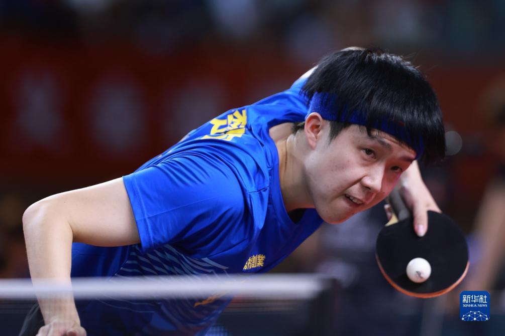 7月19日,山东鲁能队选手袁励岑在比赛中,他以1比3不敌山东魏桥队选手王楚钦。最终山东魏桥队以3比2战胜山东鲁能队。新华社记者 刘续 摄