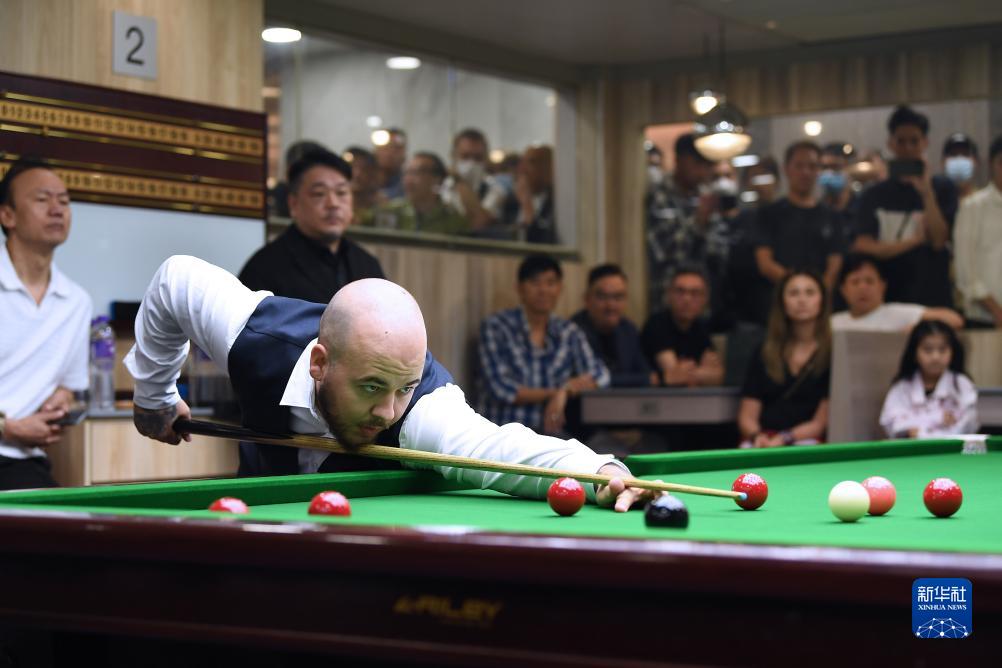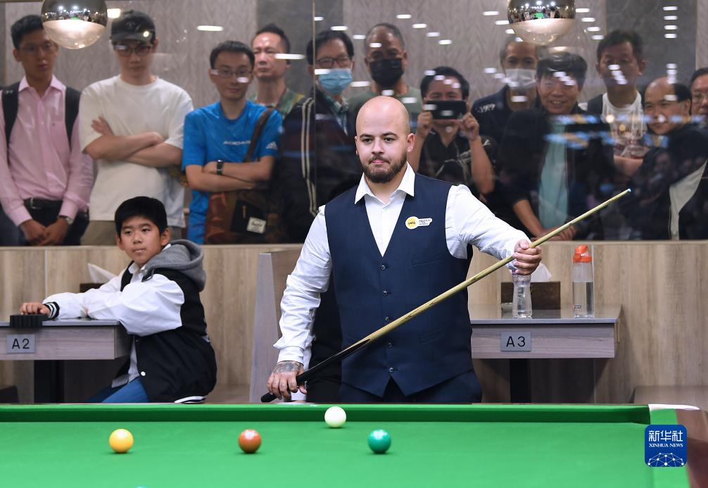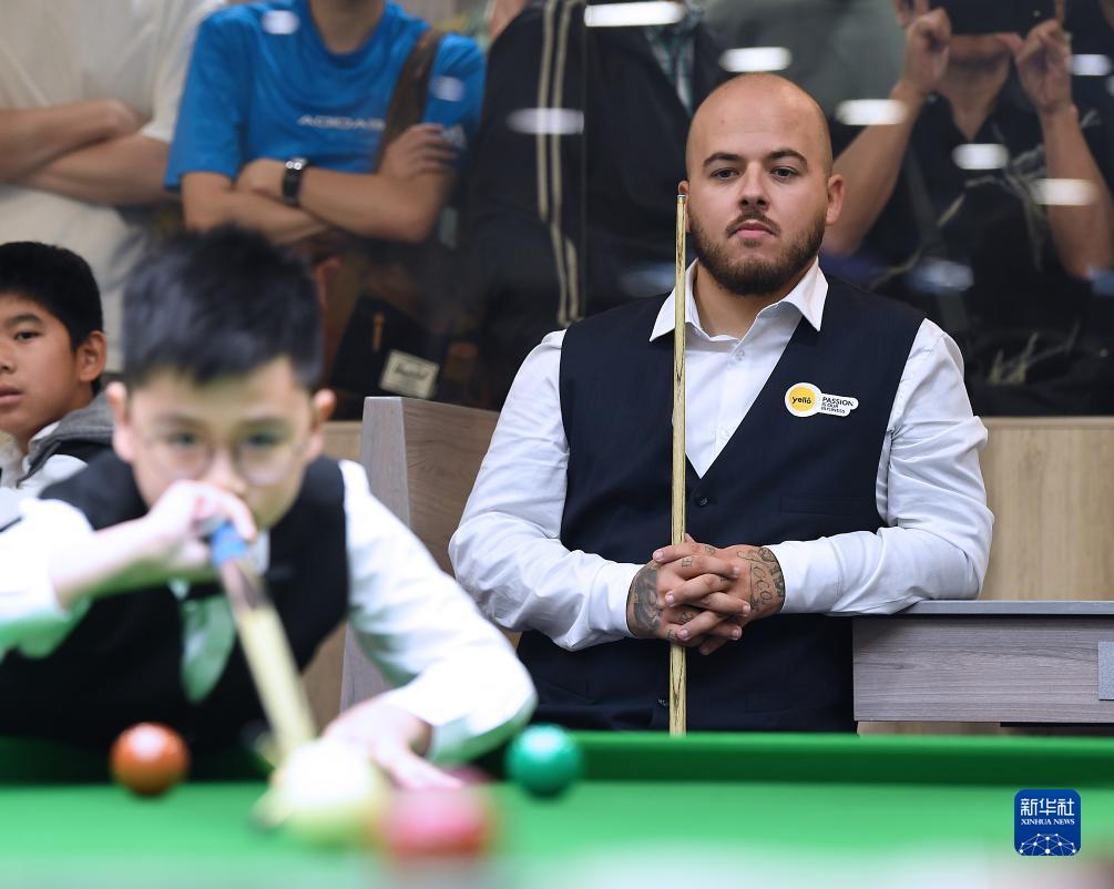 当日,2023世界斯诺克锦标赛冠军卢卡·布雷切尔到访香港,在一家台球俱乐部出席球迷见面会,并与一名香港小球手进行表演赛,吸引了大量斯诺克球迷前来观战。
