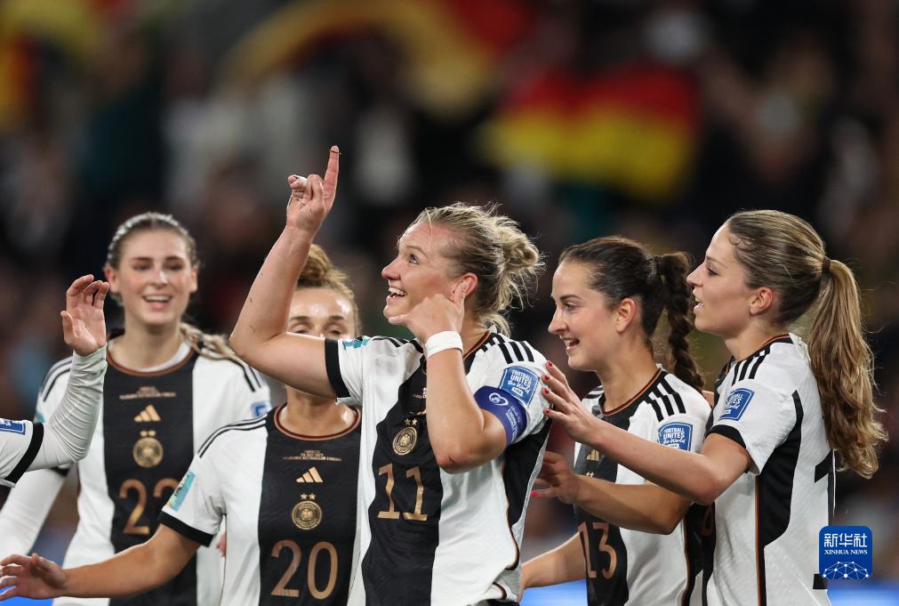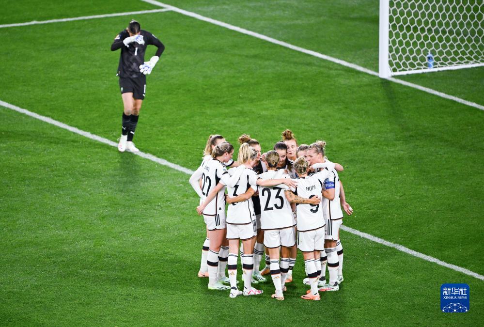 7月24日,德国队球员庆祝进球。新华社记者 张晨 摄
