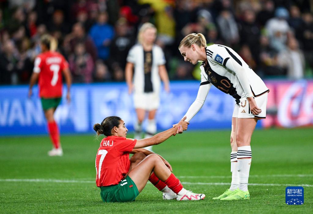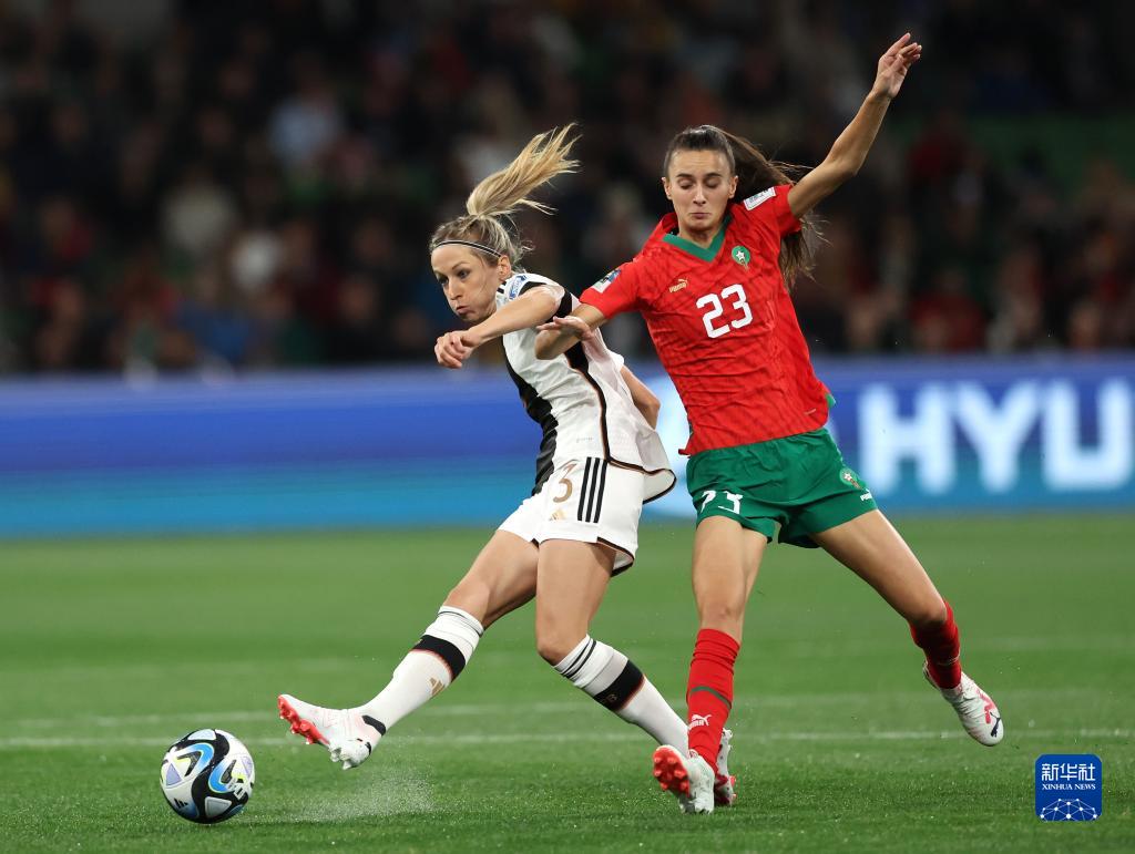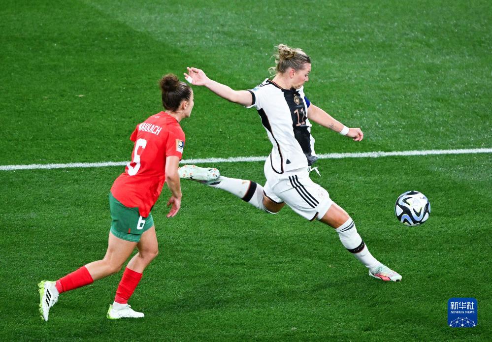 当日,在澳大利亚墨尔本举行的2023年国际足联女足世界杯H组小组赛中,德国队以6比0战胜摩洛哥队。