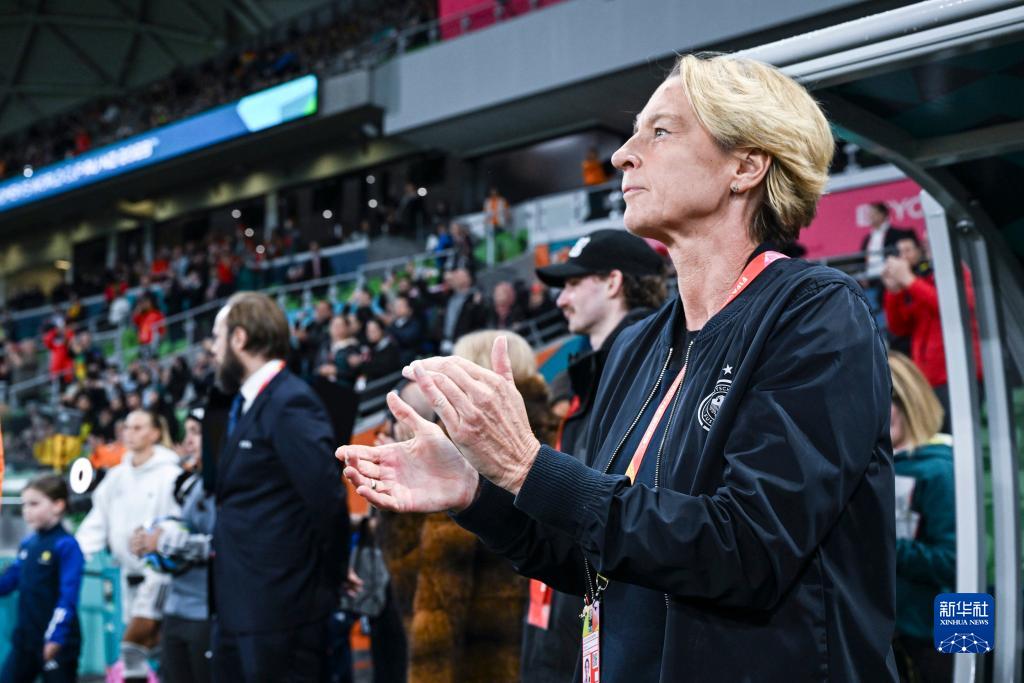 7月24日,德国队主教练福斯·特克伦堡在比赛前。新华社记者 毛思倩 摄