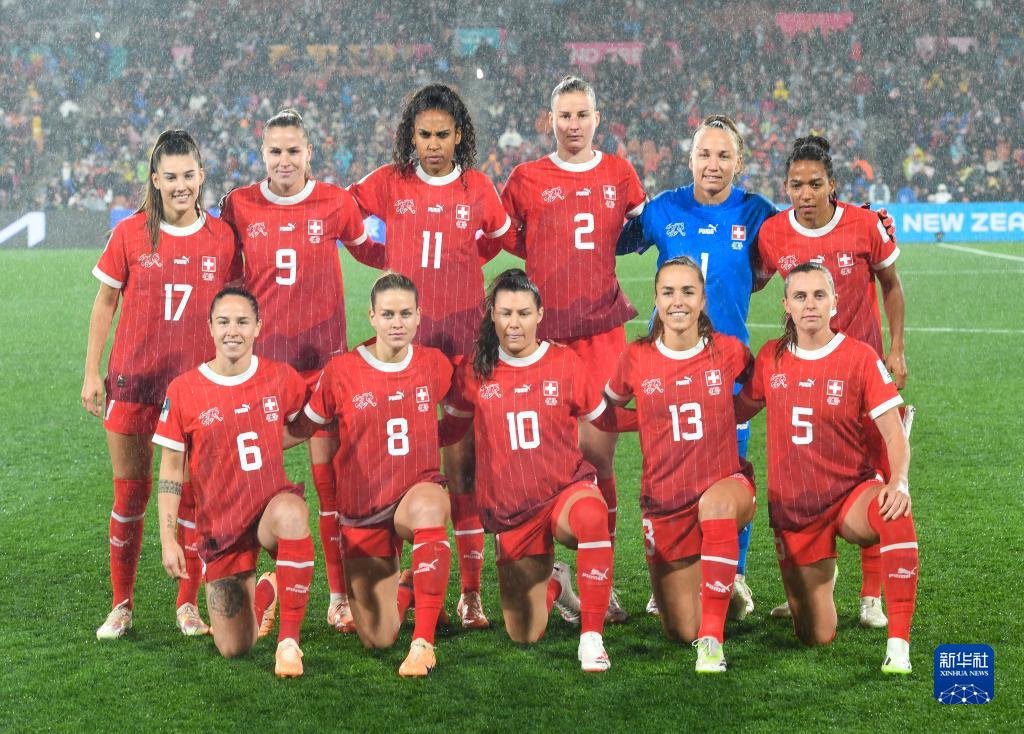 7月25日,瑞士队首发球员赛前合影。新华社记者 郭磊 摄