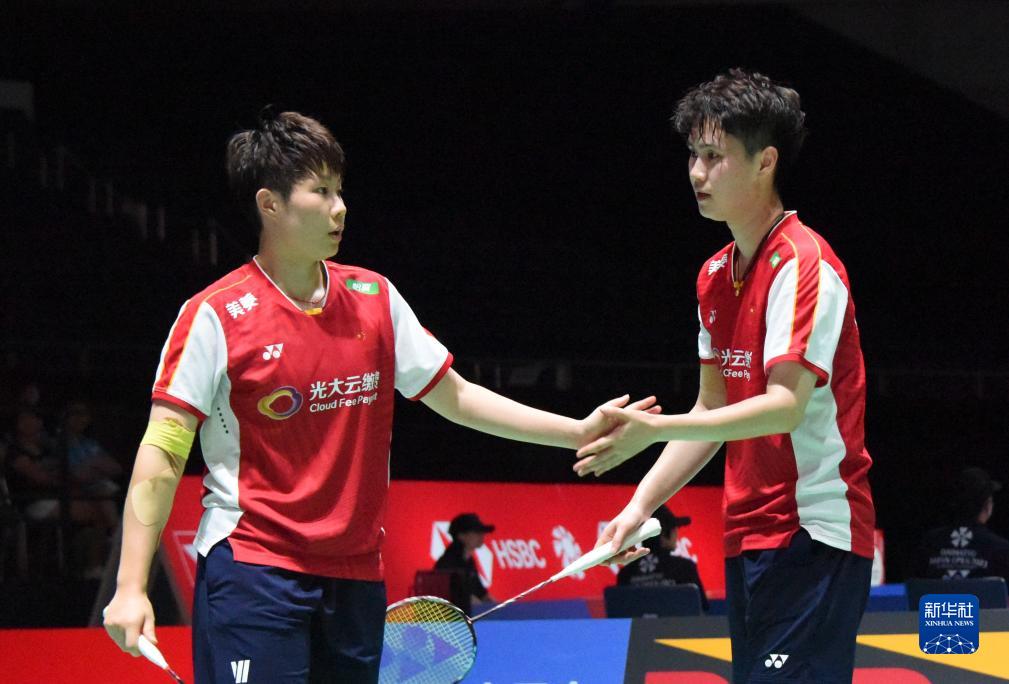 7月25日,刘圣书(左)/谭宁在女双首轮比赛中。中国组合刘圣书/谭宁以1比2不敌马来西亚组合陈康乐/蒂娜,无缘下一轮。新华社记者 杨光 摄