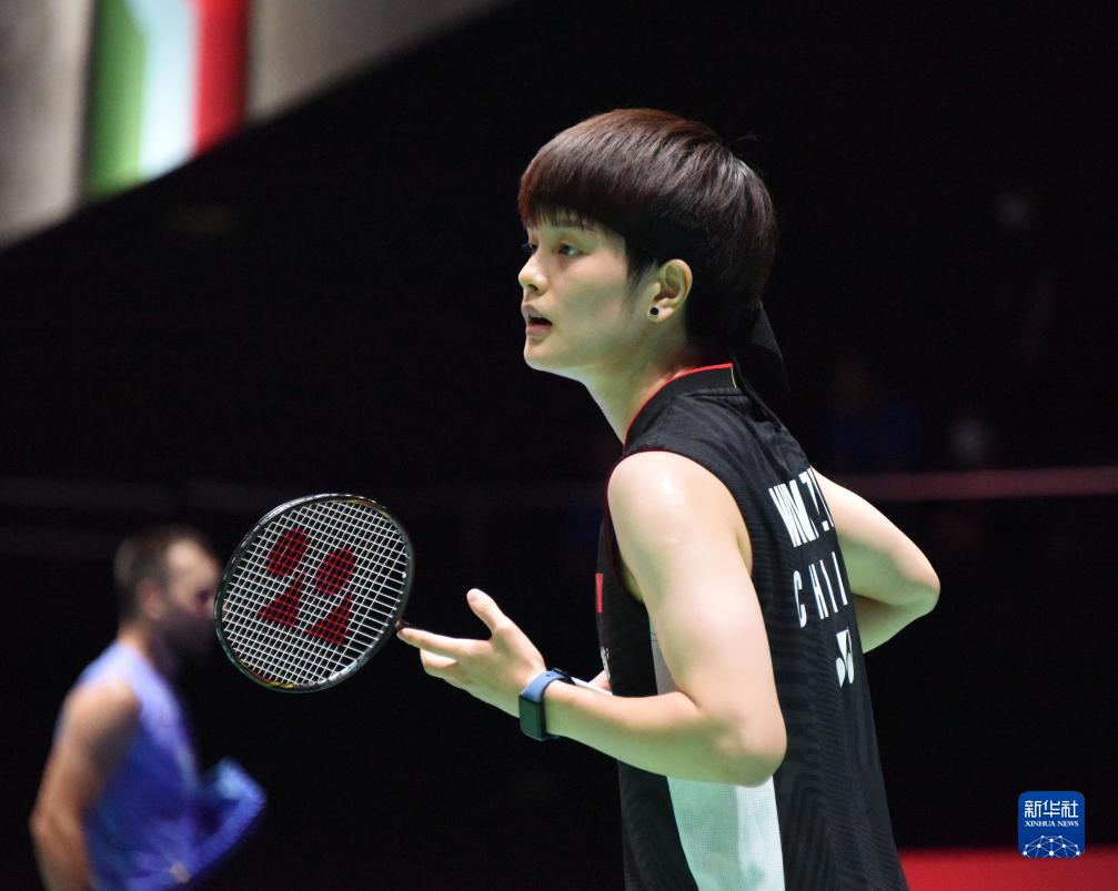 7月25日,王祉怡在女单首轮比赛中。中国选手王祉怡以2比0战胜丹麦选手杰克斯菲德,晋级下一轮。新华社记者 杨光 摄
