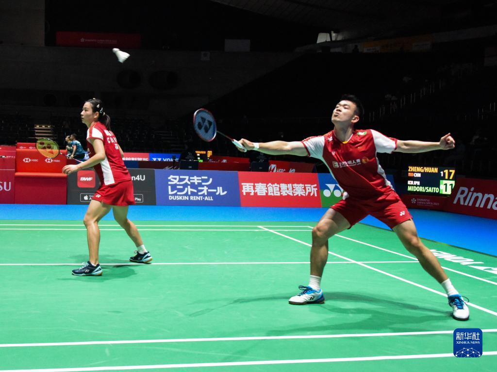 7月25日,郑思维(右)/黄雅琼在混双首轮比赛中。中国组合郑思维/黄雅琼以2比0战胜日本组合绿川大辉/斋藤夏,晋级下一轮。新华社记者 杨光 摄