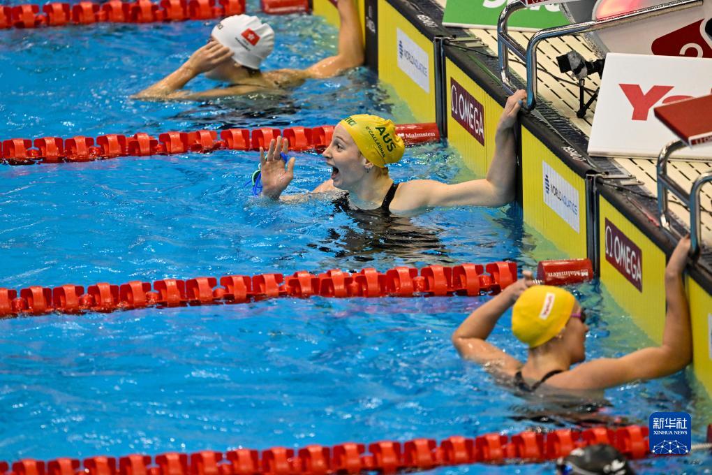 当日,在日本福冈举行的2023年世界游泳锦标赛女子200米自由泳决赛中,澳大利亚选手奥卡拉汉以1分52秒85的成绩打破世界纪录,夺得冠军。