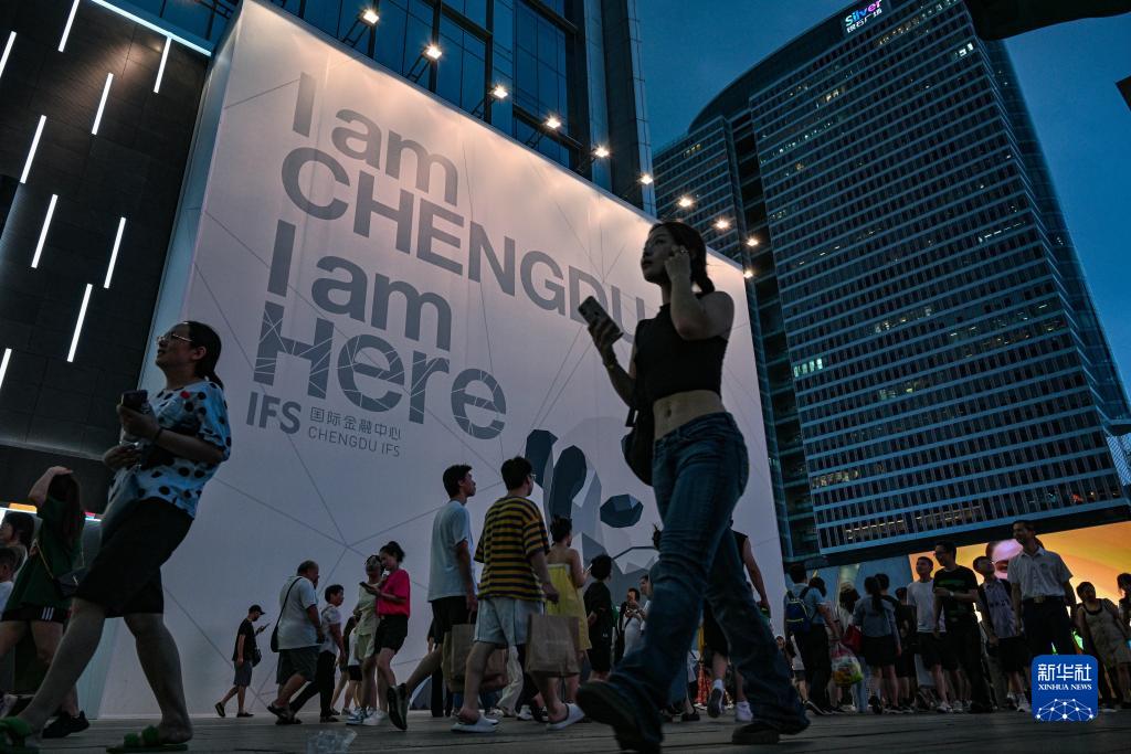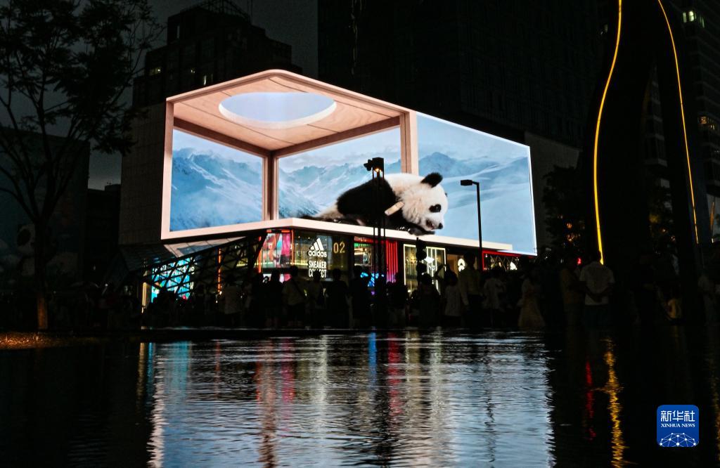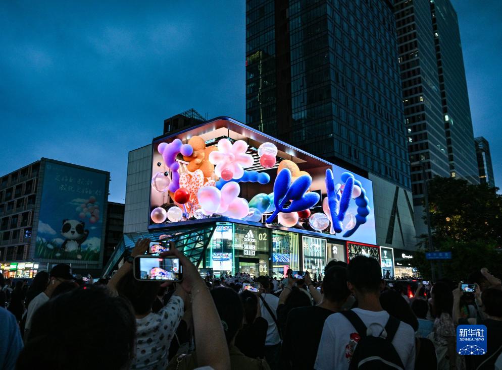 7月25日,成都太古里的3D裸眼大屏前人头攒动。新华社记者 晋美多吉 摄