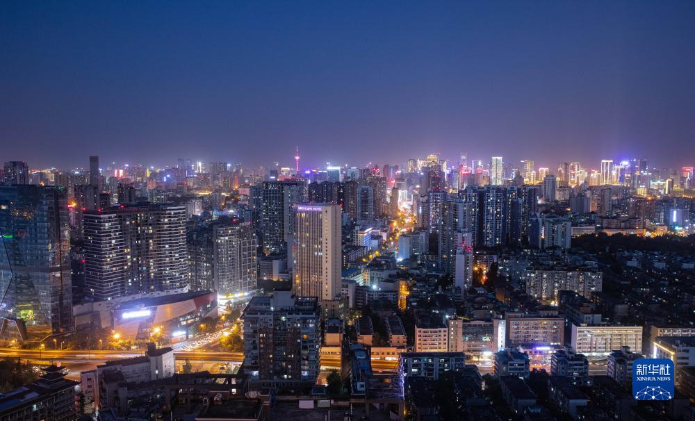 夜幕下的成都高新区一角(7月9日摄)。新华社发(王琦摄)