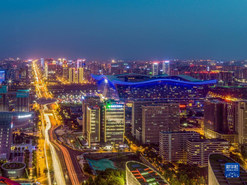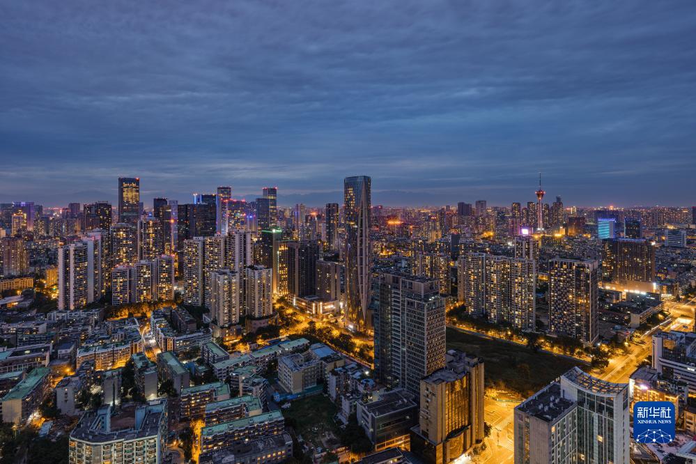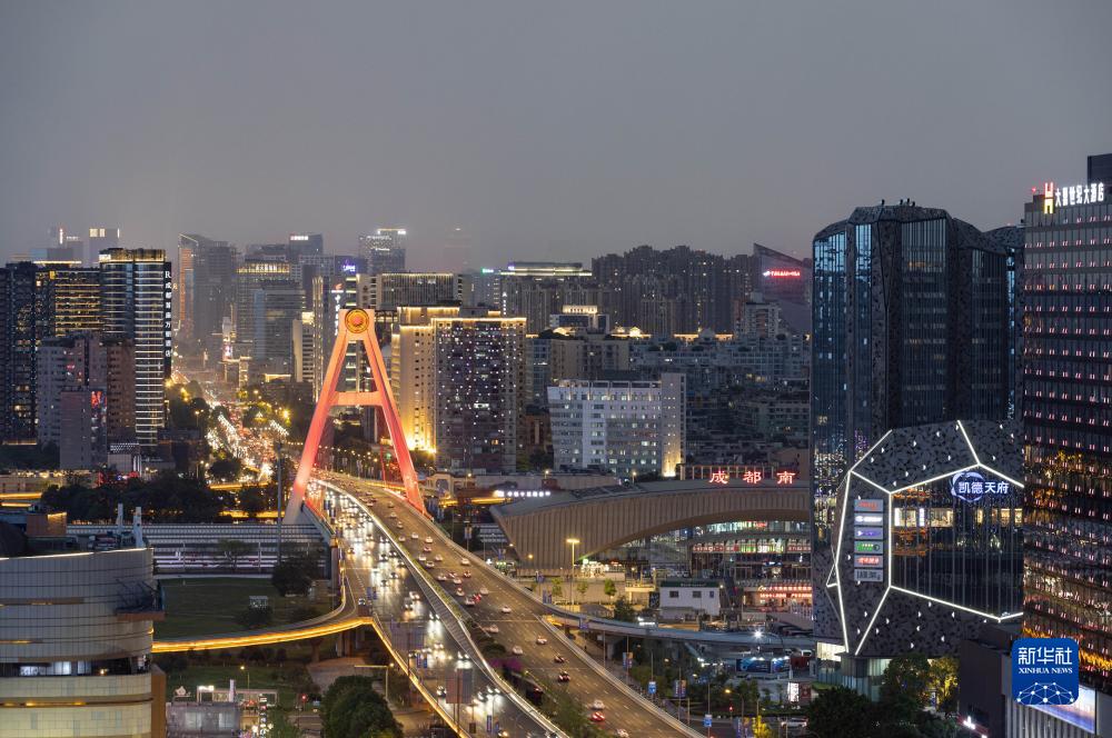 俯瞰夜色下的成都市金融城(7月18日摄)。新华社发(王琦摄)