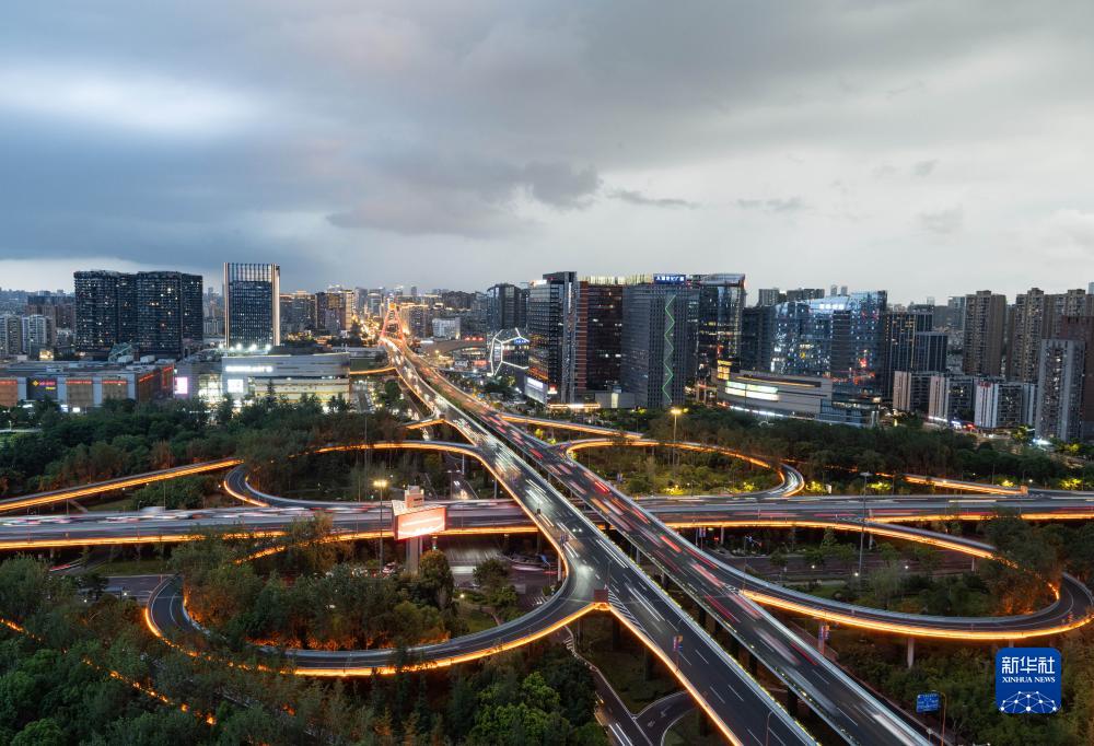夜幕下的成都市人民南路立交桥(7月25日摄)。新华社记者 江宏景 摄