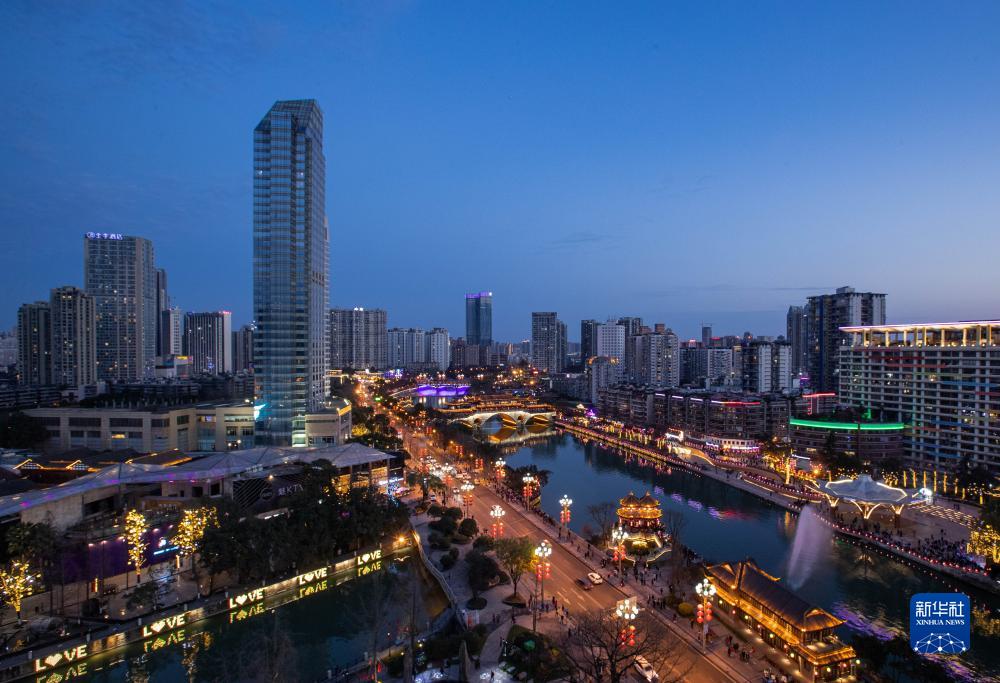 夜幕下的成都市合江亭(2月16日摄)。新华社记者 江宏景 摄
