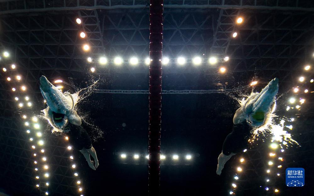 7月28日,奥卡拉汉(右)在决赛中入水。新华社记者 夏一方 摄