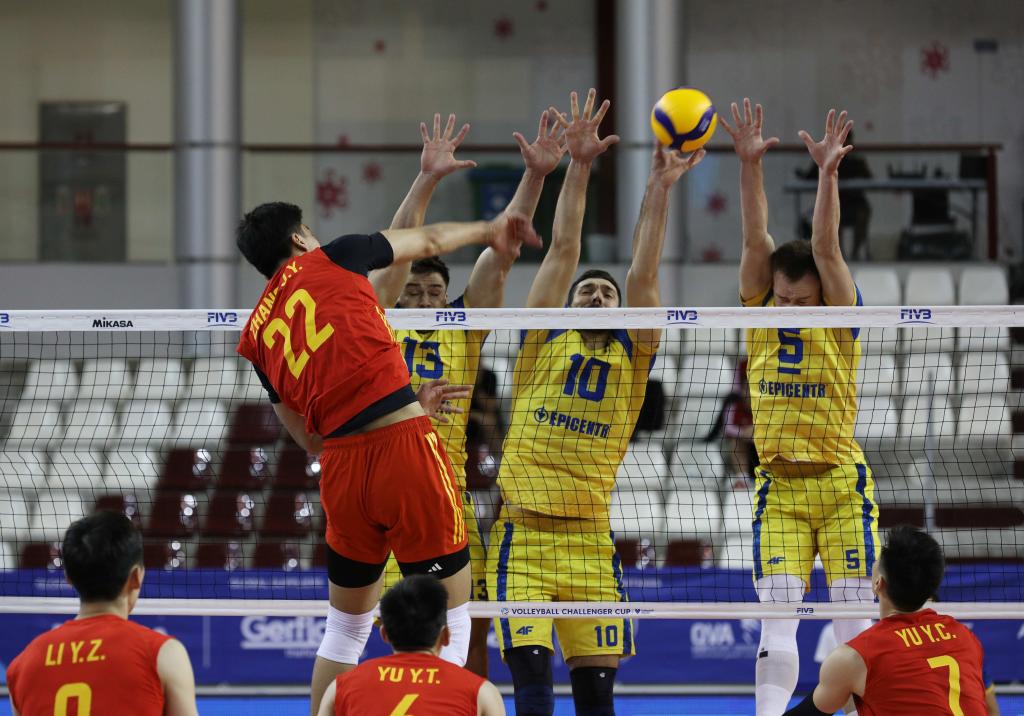 中国队与乌克兰队在比赛中。图片来自国际排联官网