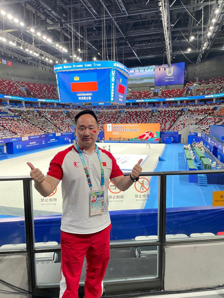 喻波在成都大运会武术比赛赛场留影。(受访者供图)