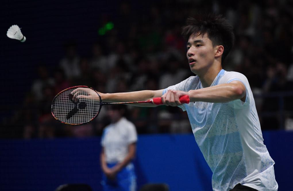 8月1日,中国队选手王正行在男单比赛中。新华社记者张端摄