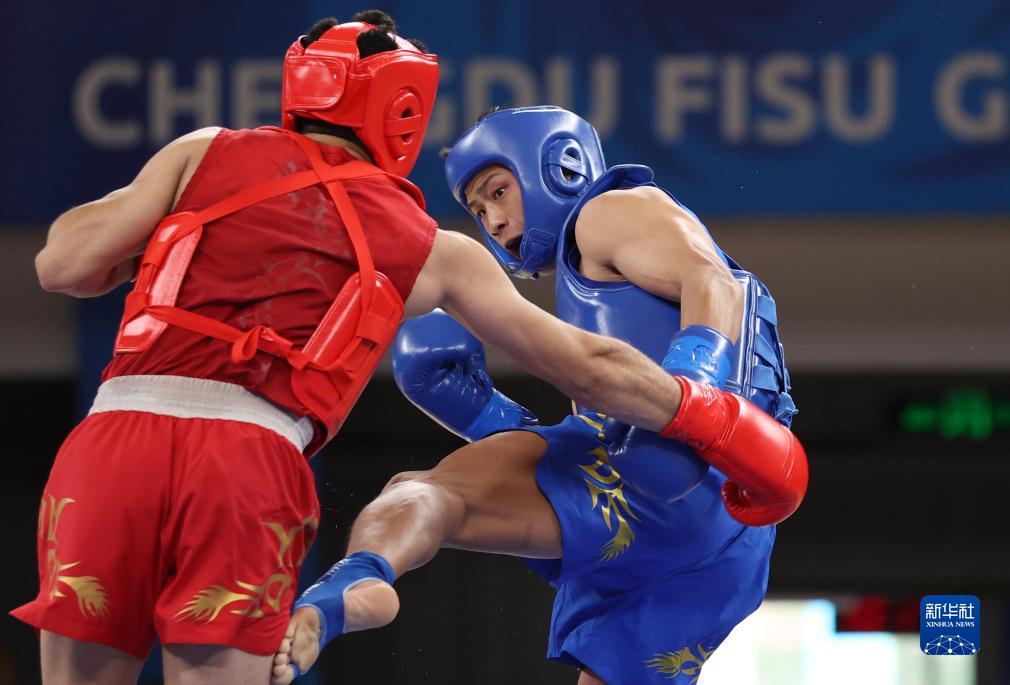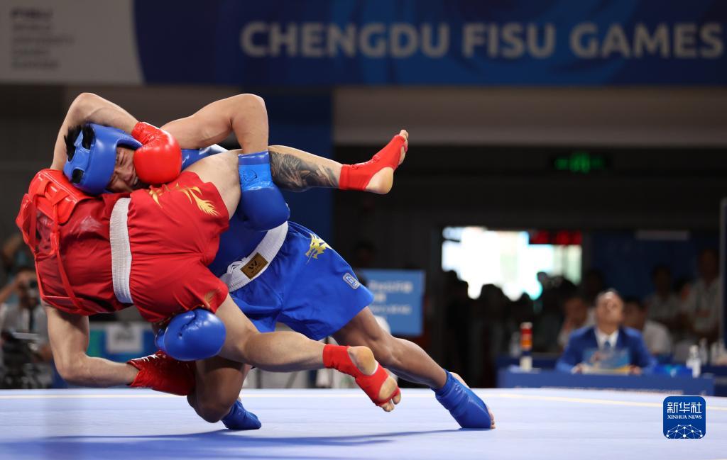 当日,在成都第31届世界大学生夏季运动会武术散打男子80公斤级决赛中,中国选手柳文龙以2比0战胜伊朗选手阿里,获得冠军。