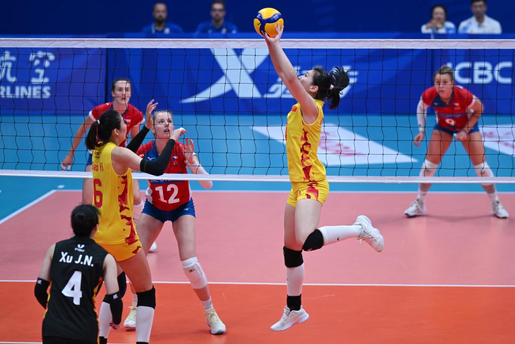 中国队的主攻吴梦洁、庄宇珊分别得到14分和12分,接应缪伊雯贡献10分。