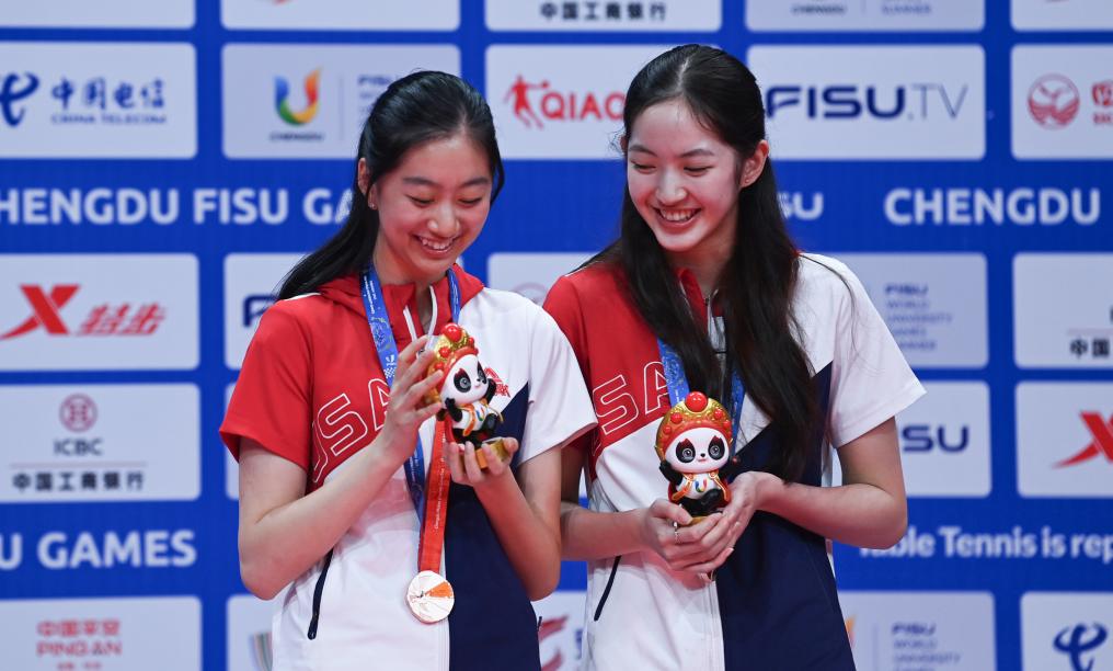 本次成都大运会,王艾米和宋家瑜要参加女子团体、混合双打、女子双打、女子单打多个项目的角逐。密集赛程之中,女双项目是二人离领奖台最近的一次。尽管当天最终不敌中国队钱天一/赵尚组合,但根据赛制,她们和一对日本组合并列获得季军,这枚创造美国队历史的奖牌着实凝结着两个姑娘的努力和幸运。