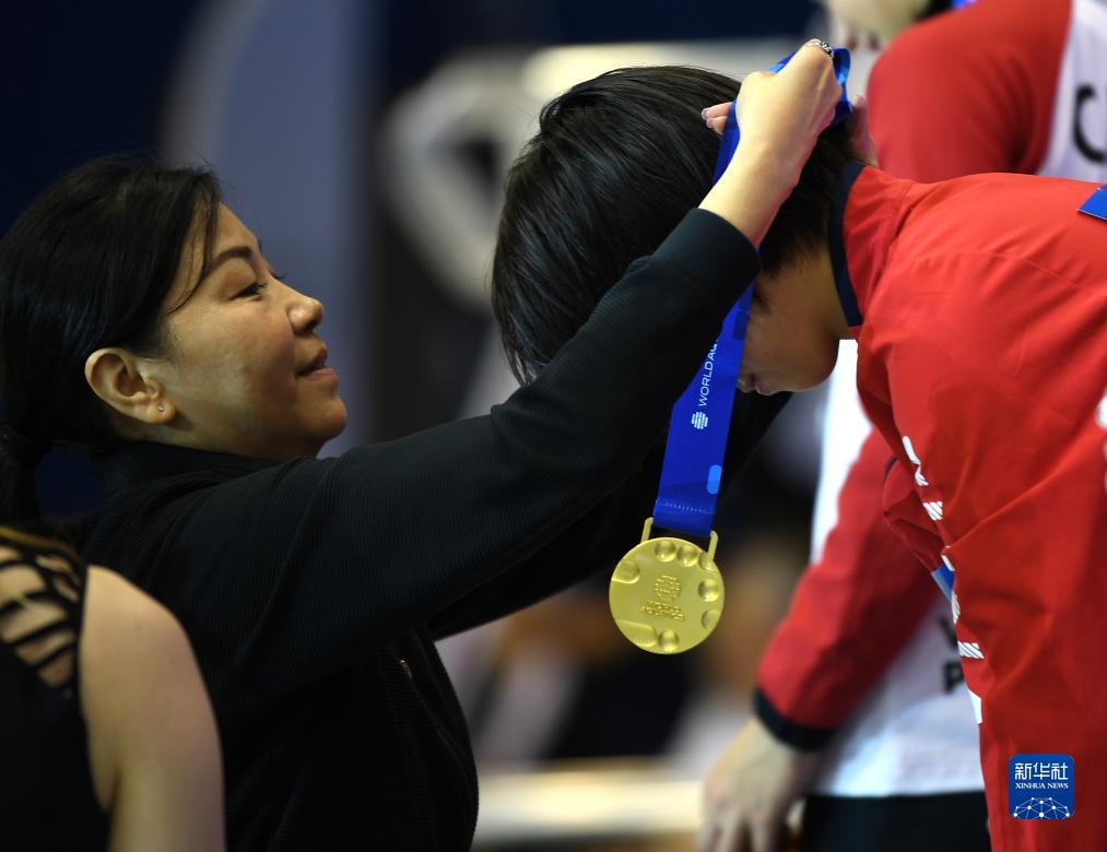 8月4日,世界泳联副主席周继红(左)为获得冠军的中国组合陈芋汐/全红婵颁奖。新华社记者 任鹏飞 摄