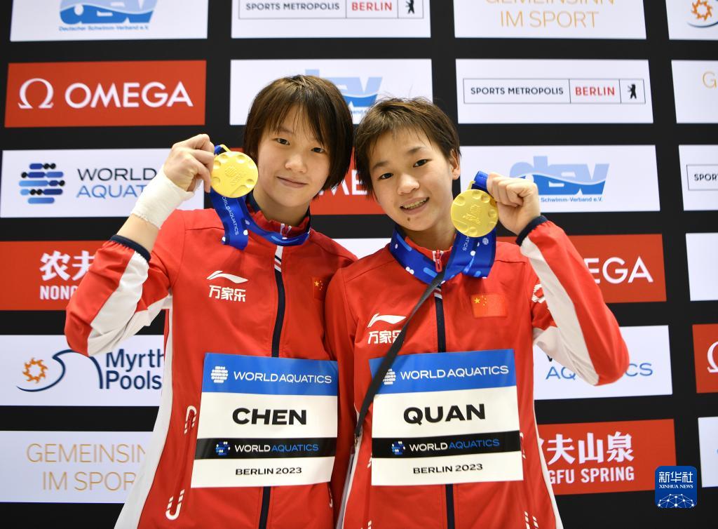 当日,在德国柏林举行的2023年世界泳联跳水世界杯总决赛女子双人10米台决赛中,中国组合陈芋汐/全红婵以362.76分的总成绩夺得冠军。