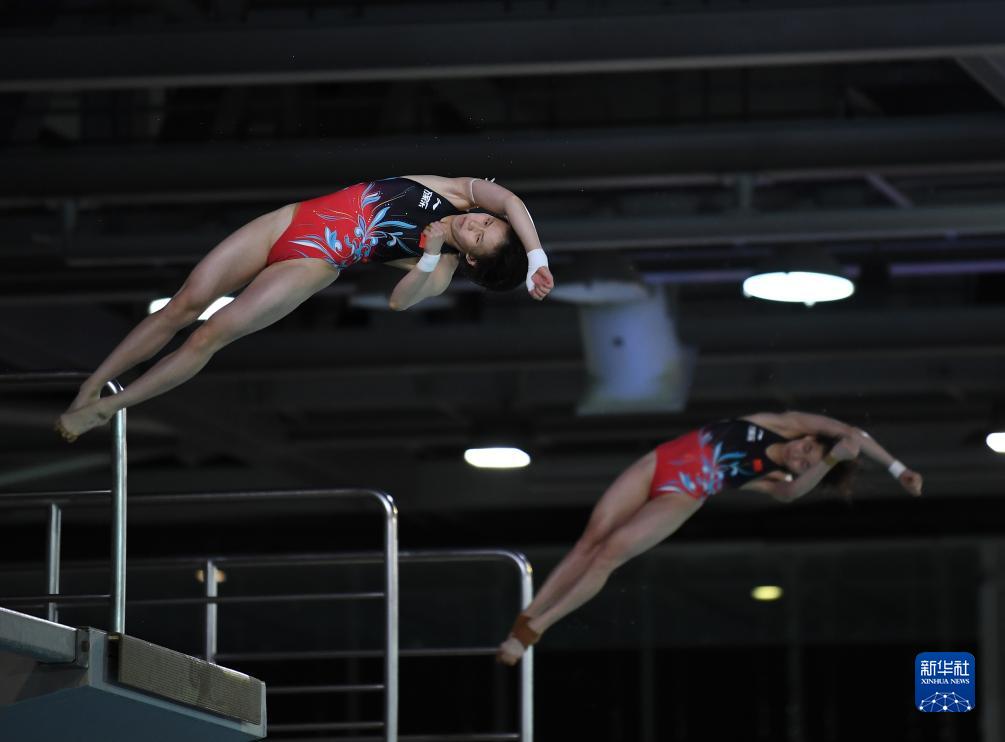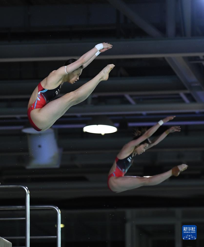 8月4日,陈芋汐(左)/全红婵在比赛中。新华社记者 任鹏飞 摄