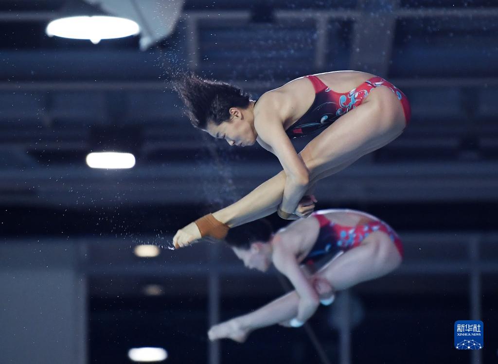 8月4日,陈芋汐/全红婵(上)在比赛中。新华社记者 任鹏飞 摄