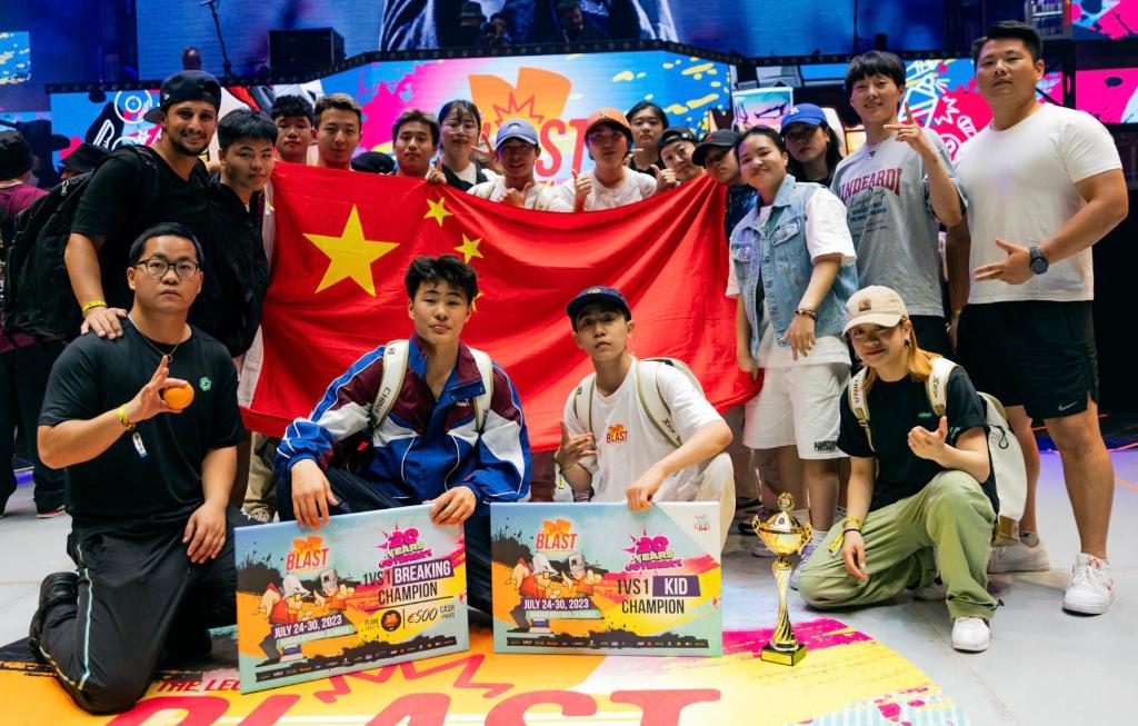 亓祥宇在夺冠后的合影。图片来自中国霹雳舞国家队
