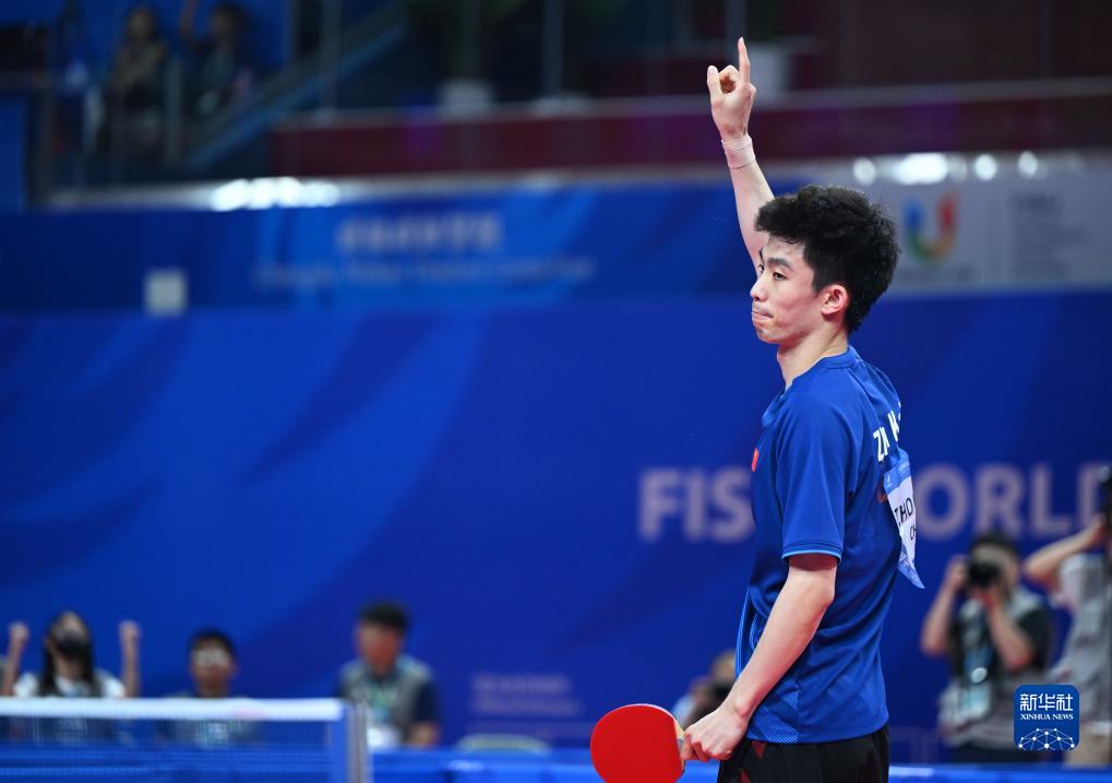 当日,在成都举行的第31届世界大学生夏季运动会乒乓球比赛男子单打决赛中,中国选手周恺以4比2战胜队友徐瑛彬,获得冠军。
