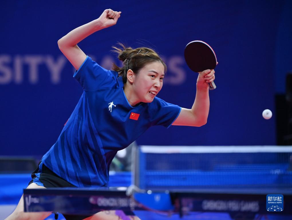 当日,在成都举行的第31届世界大学生夏季运动会乒乓球比赛女子单打决赛中,中国选手钱天一以4比3战胜日本选手出泽杏佳,获得冠军。