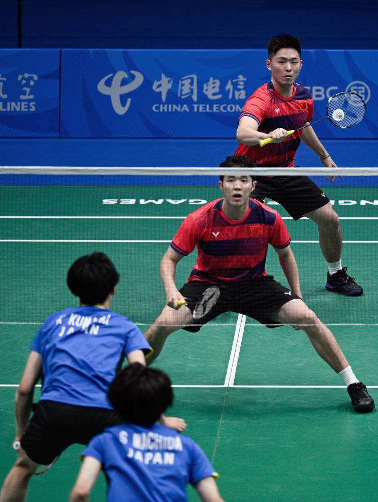 一天打了四场球,中国队选手何济霆感觉“有点疲惫”,很久没打这么高强度的比赛了,午饭都没来得及认真吃。他一边搭档杜玥在混双赛场接连战胜马来西亚和印尼组合,一边携手周昊东在男双比赛中先后击败尼日利亚和日本组合,同时晋级这两个单项的八强。
